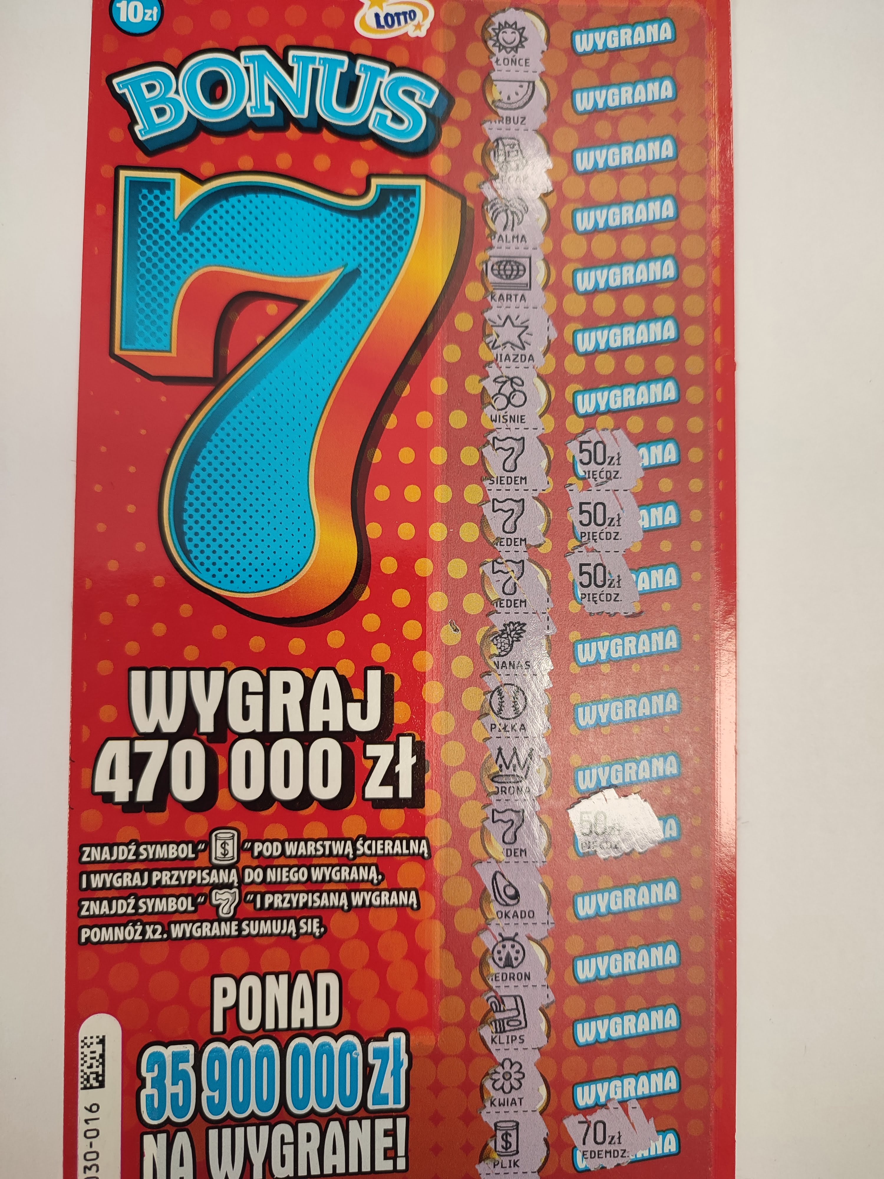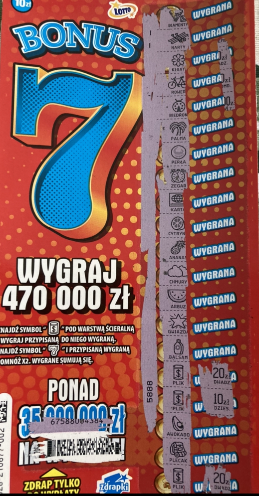 Ja dzisiaj drapałem w punkcie tą zdrapkę wzielem 5 sztuk i były puste wszystkie . Pech to pech . Piątek nie jest dla mnie dobrym dniem w zdrapkach wiem to z doświadczenia . Środa jest dobra u mnie w zdrapki ale pod warunkiem ,że nie wychodze z domu