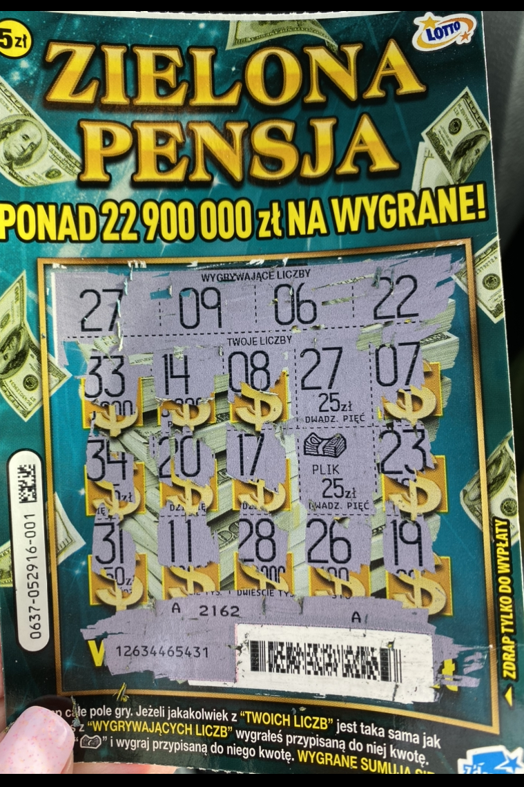 Po co zdjęcie stawki x2?Adamsky777 pisze: ↑26 lut 2023, 17:46Nie kupowałem zdrapek od dawna, gram w gry liczbowe ale dzis w Żabce poprosiłem Panią o cos za 5zl, lepszy rydz niz nic:)