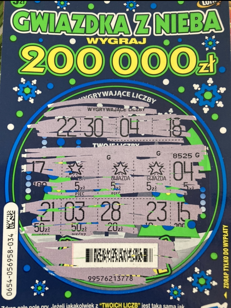 W obliczu zmian w terminach zakonczenia sprzedaży niektórych zdrapek i zbliżajacego sie okresu świątecznego to ta gwiazdka wydaje sie być ciekawą opcją na jakieś polowanie. Swoją drogą myślałem że wszystkie główne już padły ale jednak nadal czeka 1 w przedziale poniżej 040xxx. Prawde mówiąc nie wiem jakie mam przedzialy choć zeszłoroczna stówka wskazuje że nieciekawe ale coś mogło się pozmieniać. Muszę sprawdzić