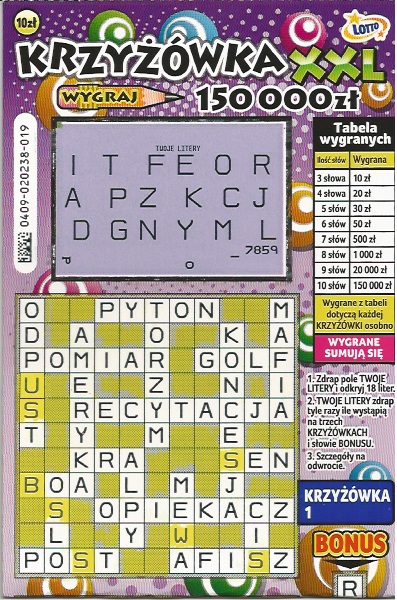 A ja właśnie wczoraj pierwsza żółta i 20zl ale wcześniejsze niebieskie też więcej pełnych niż pustych, calkiem dobrze się zaczyna ta edycja A z krzyżówek lubię tylko te po 3zl właśnie
