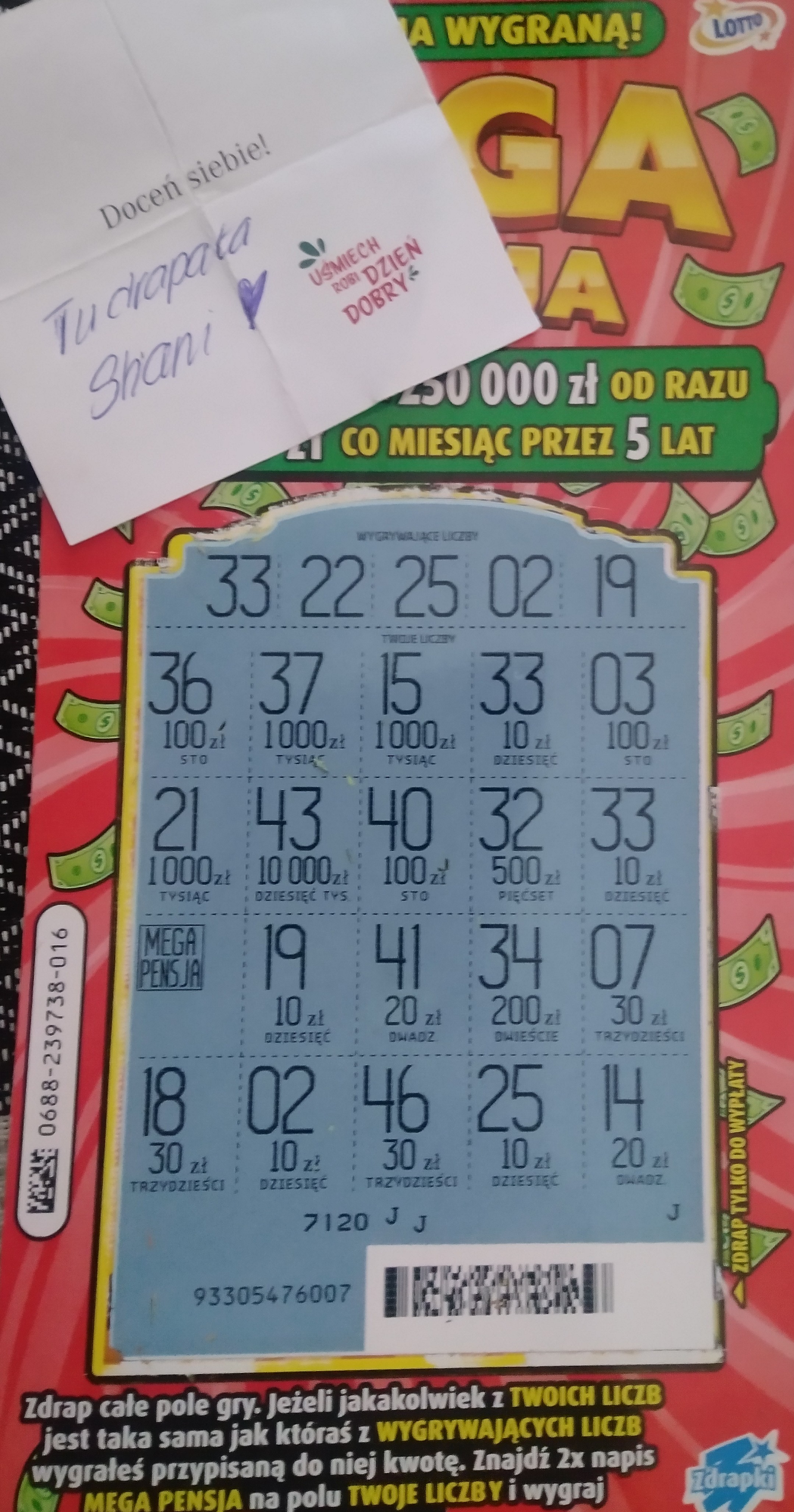 Dzisiaj jedna sztuka ze zdrapkomatu i wpadło 20 zł w nr 007 (wersja zielona)