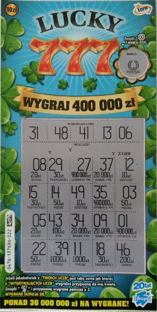 Nie no Grzybek, tak to można drapać... 11 sztuk i 8 pełnych - i jeszcze w tak drogiej zdrapce
