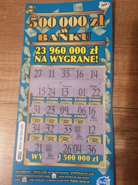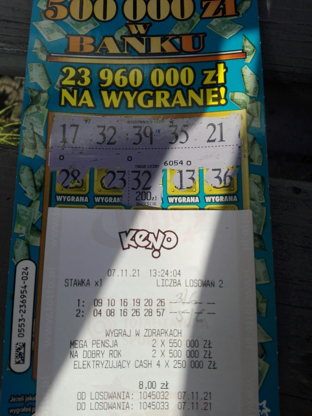 Gratulacje @drapku, fajnie Ci idzie, widać ze masz nosa i do zdrapek i do keno.