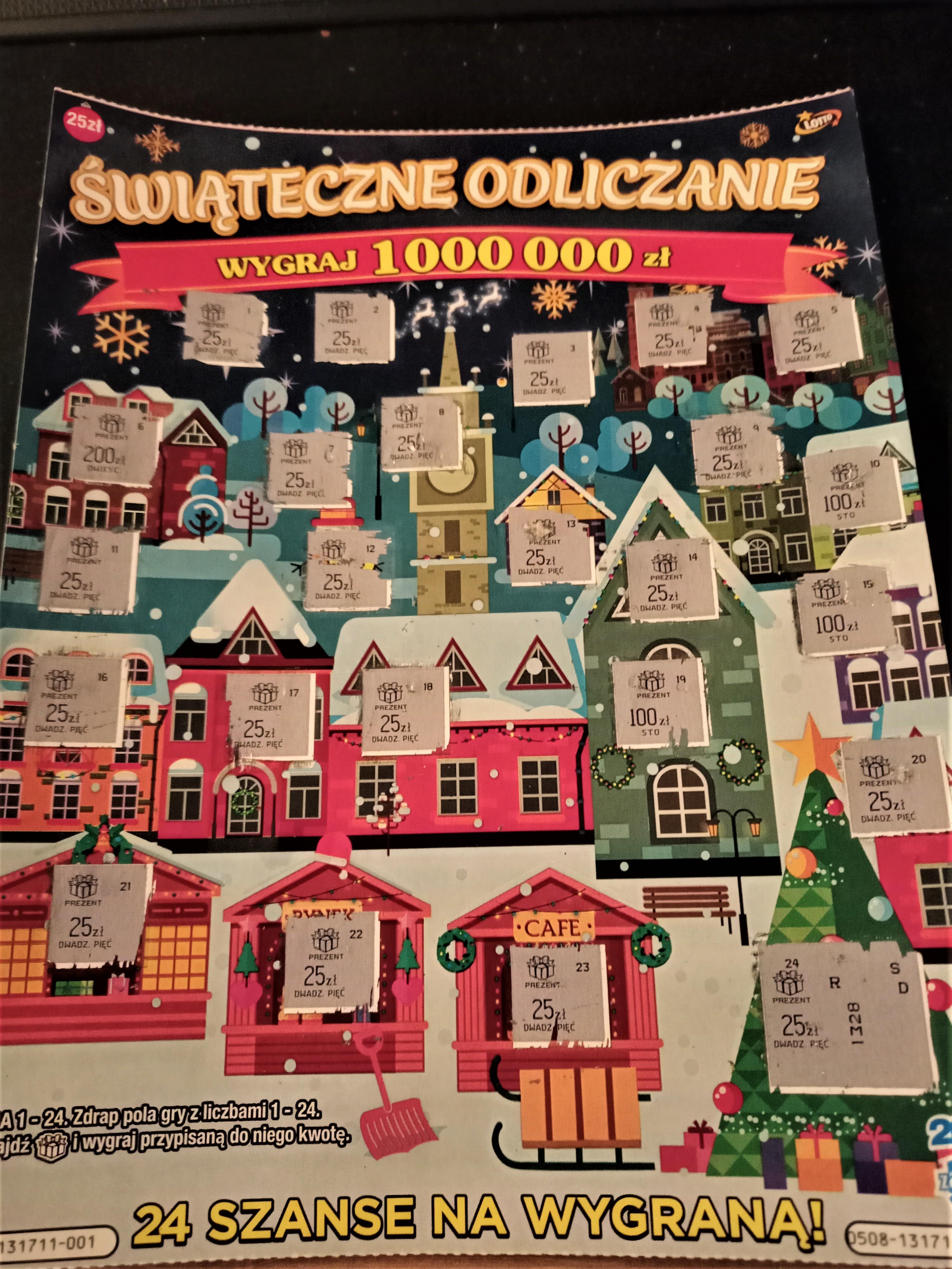Pięknie się zaczął dla mnie ten nowy rok, oby to był jakiś znak. Tylko 40 sztuk na całą Polskę zostało takich wygranych (realnie pewnie mniej, bo część przepadła przez kontrolne). Tak niewiele brakło do miliona