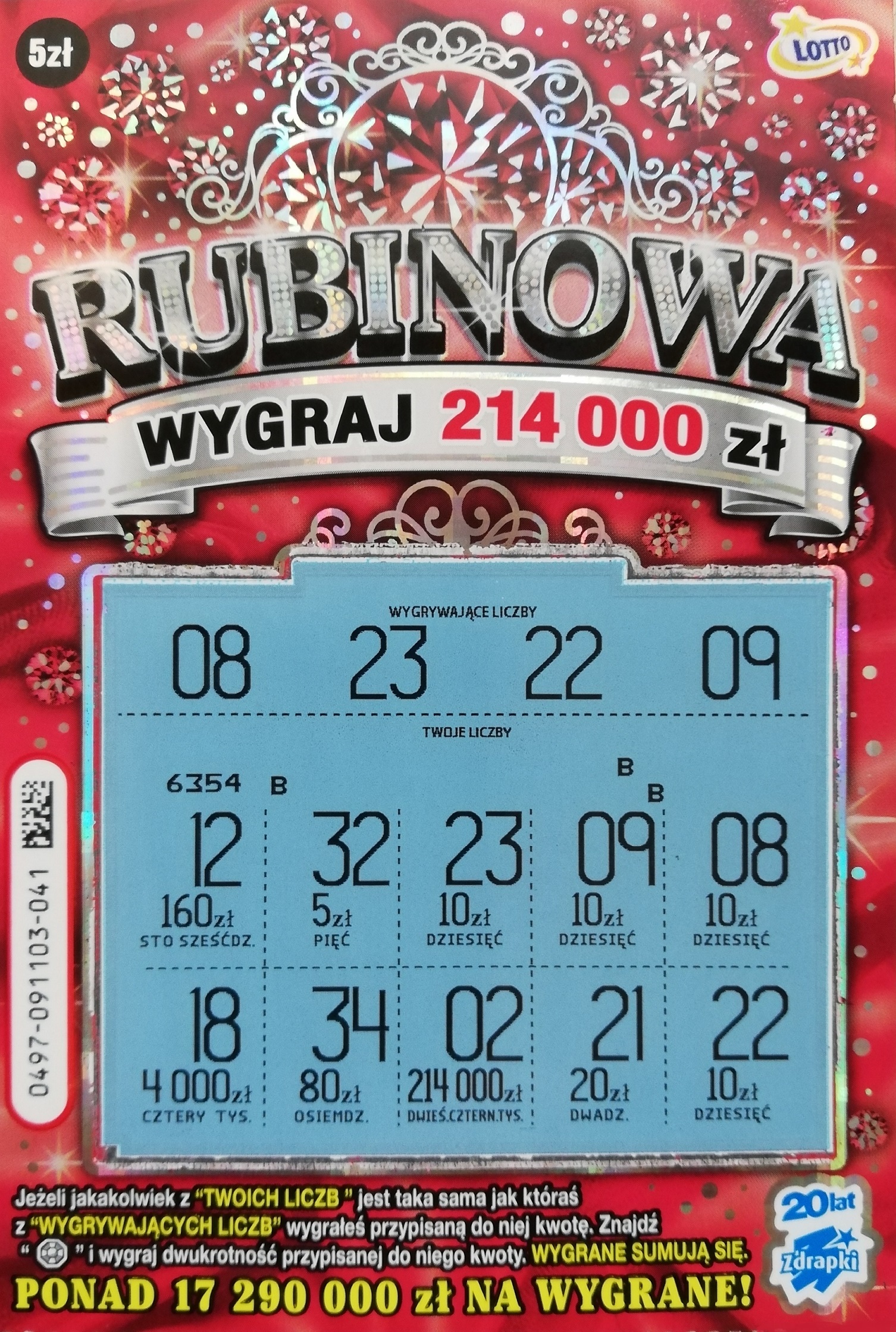 Dziś kupiłam trzy "Rubinowe" , dwie były puste, natomiast w niezawodnym numerze 033 było 40 zł