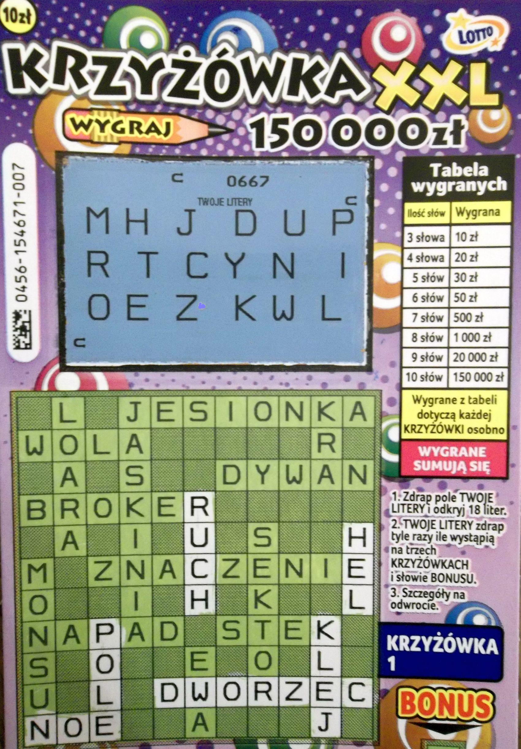 Ciekawa sprawa z tą krzyżówką. Mimo braku literki A siadło 50 zł