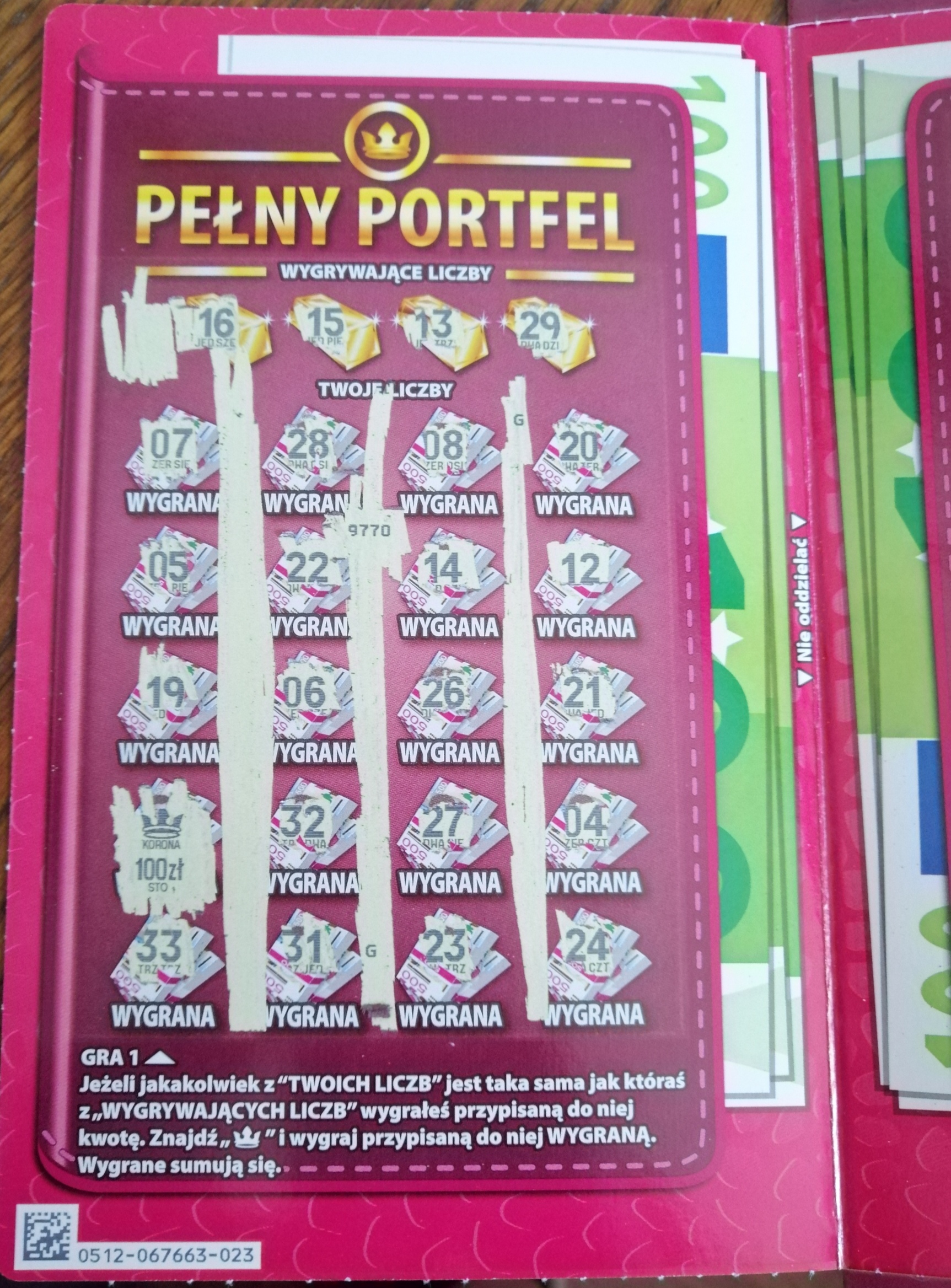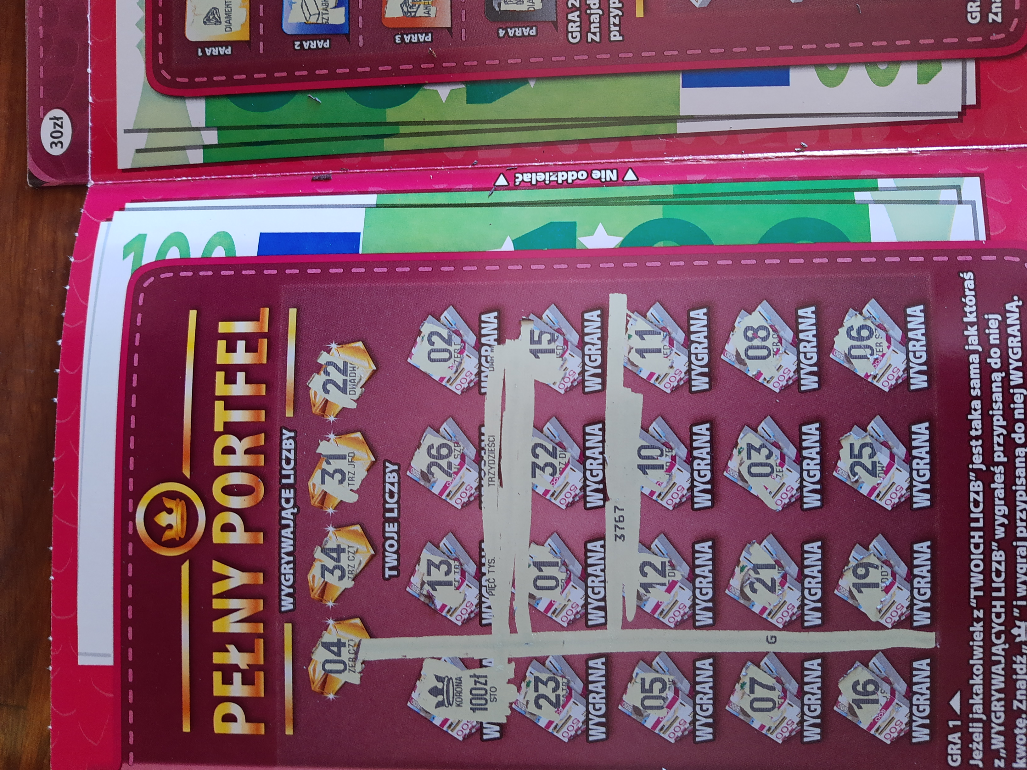 Nie kupuje tej zdrapki zazwyczaj, ale wczoraj trafiłem 60 zł, a dziś 100zl
