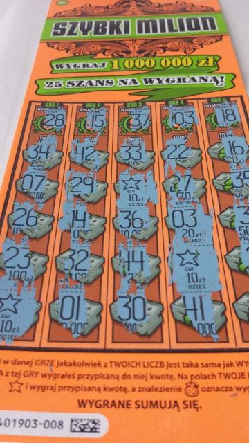 Przy okazji mega szczęścia w Casino, Lucky 77 i 500 przez 365 dni wydrapałem całą pakę Szybkiego Miliona - rozkład wygranych: