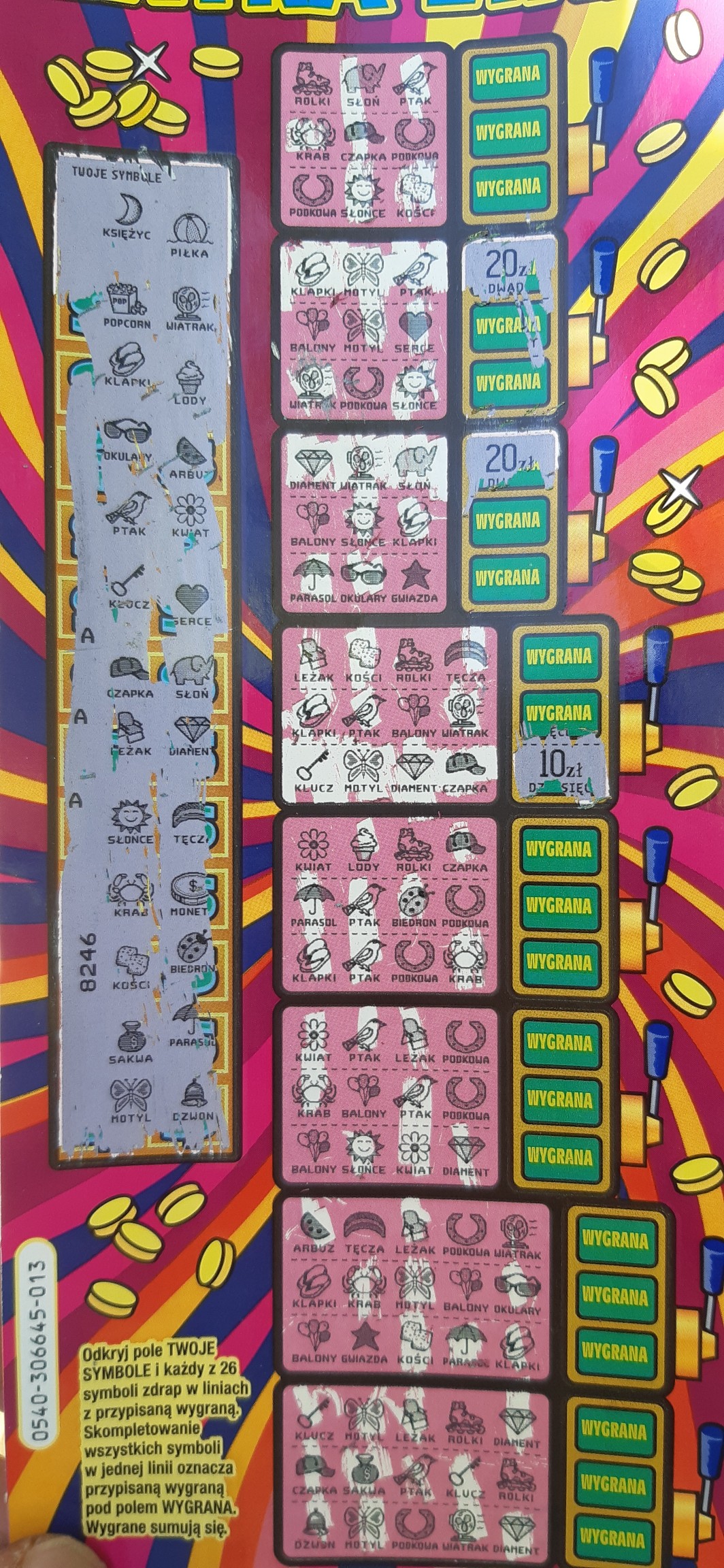 Pani odpowiedziała ze byly rano ale już sie sprzedały, wiec spytalem czy jeszcze beda.? Ku mojemu zdziwieniu uslyszalem ze juz prawdopodobnie nie będzie dostepna ta zdrapka u nas (w Ilawie) ponieważ prawdopodobnie sie skonczyly na ten rejon.. Ktos ogarniety i kumaty bardziej odemnie powie o co chodzi jezeli w sprzedazy mamy jeszcze ponad 200 tys. Przeciez nie ogloszono nawet daty zakonczenia sprzdazy tej zdrapki a tu info ze jej juz nie będzie. Moze sie ktos wypowiedziec????