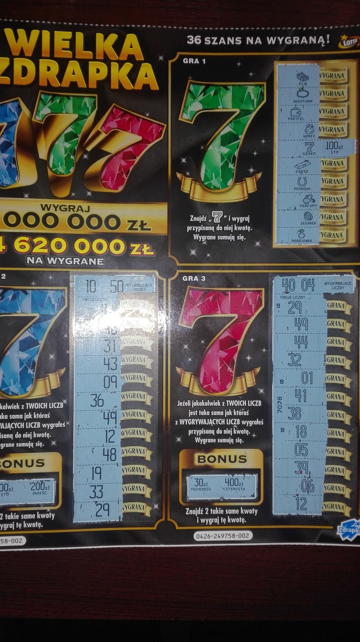 Re: Wielka Zdrapka 777 [426]