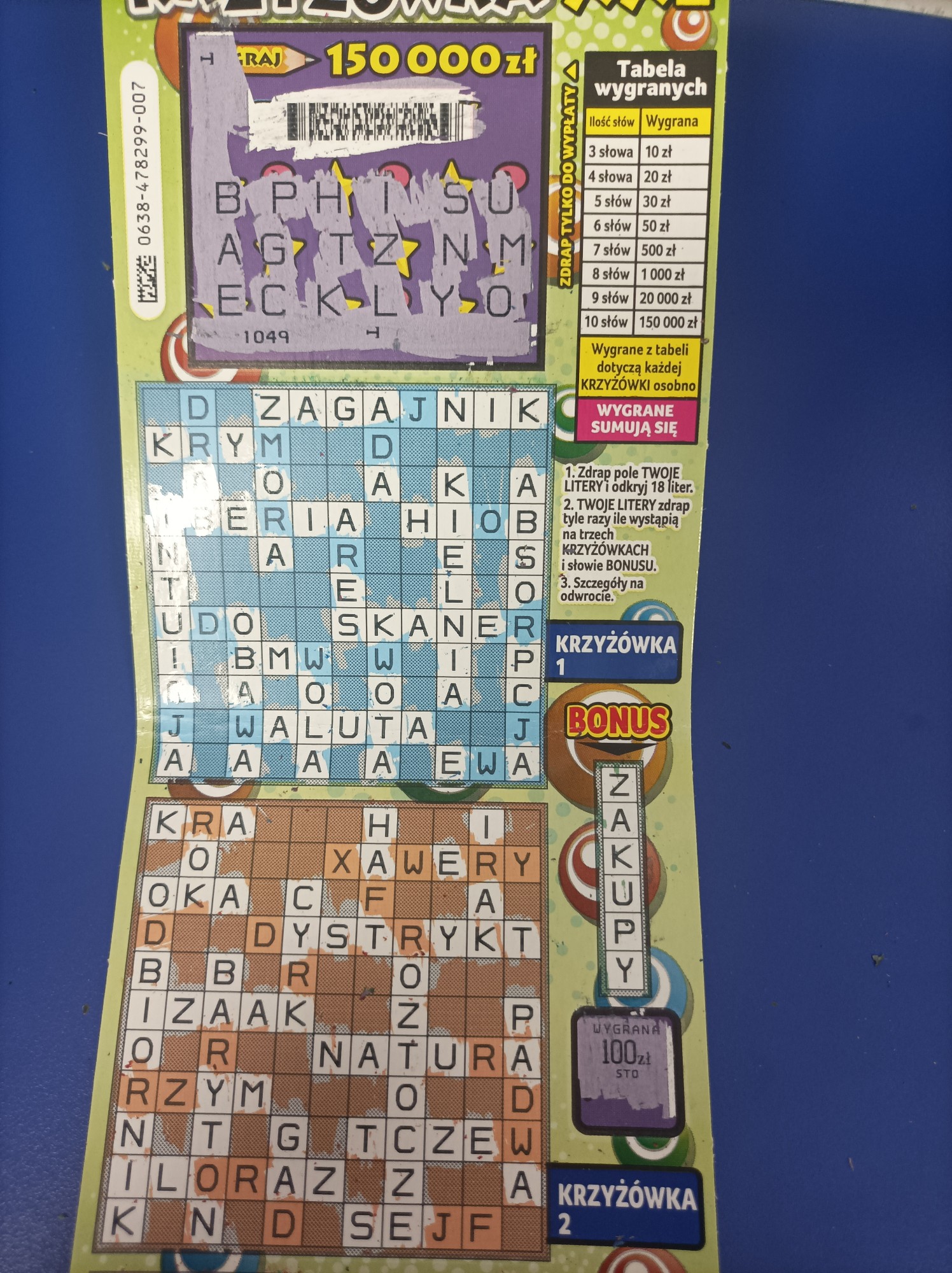 Wzięłam 3 ostatnie z paczki numery od 16 do 18 iii... w 16 - 50 zeta, w 17 - 10 zeta, a w 18 - 100 zeta. Wygrane losy w tych zdrapkach lubią być blisko siebie