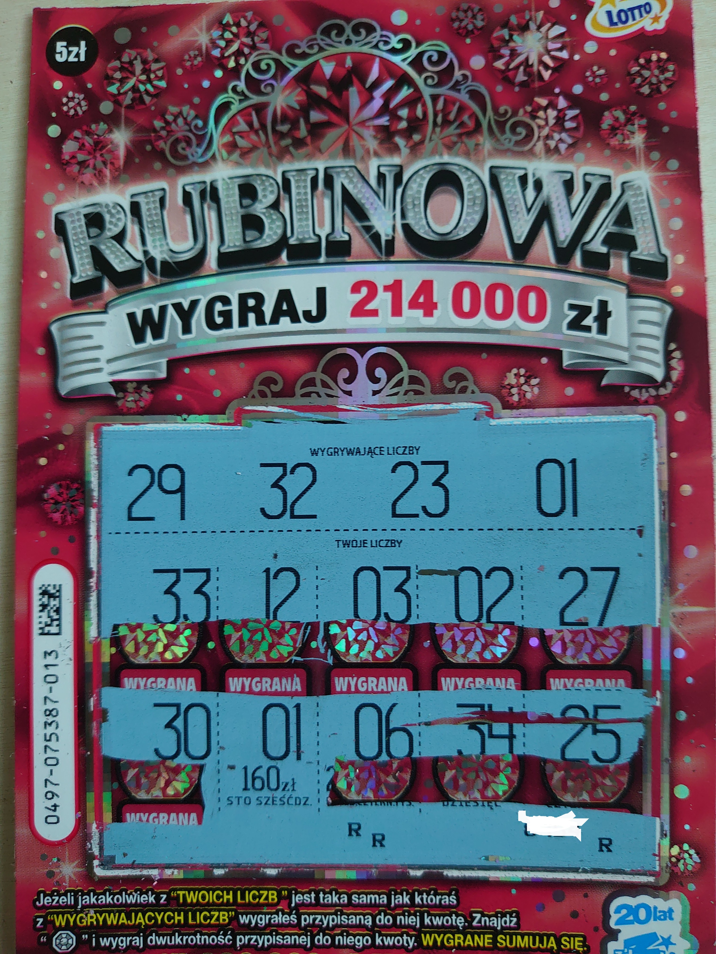 widziałem ile tych 160tek zostało niewypłaconych więc nie problem się domyślaćNutaharion pisze: ↑13 paź 2019, 11:41Łał, 160 zł uratowało bilans paczki i zmotywowało do drapania. Ale ostrożnie bo to nagroda co się zdarza w jednej na 72 paczki więc następnego takiego okazu możesz już nie uświadczyć![]()