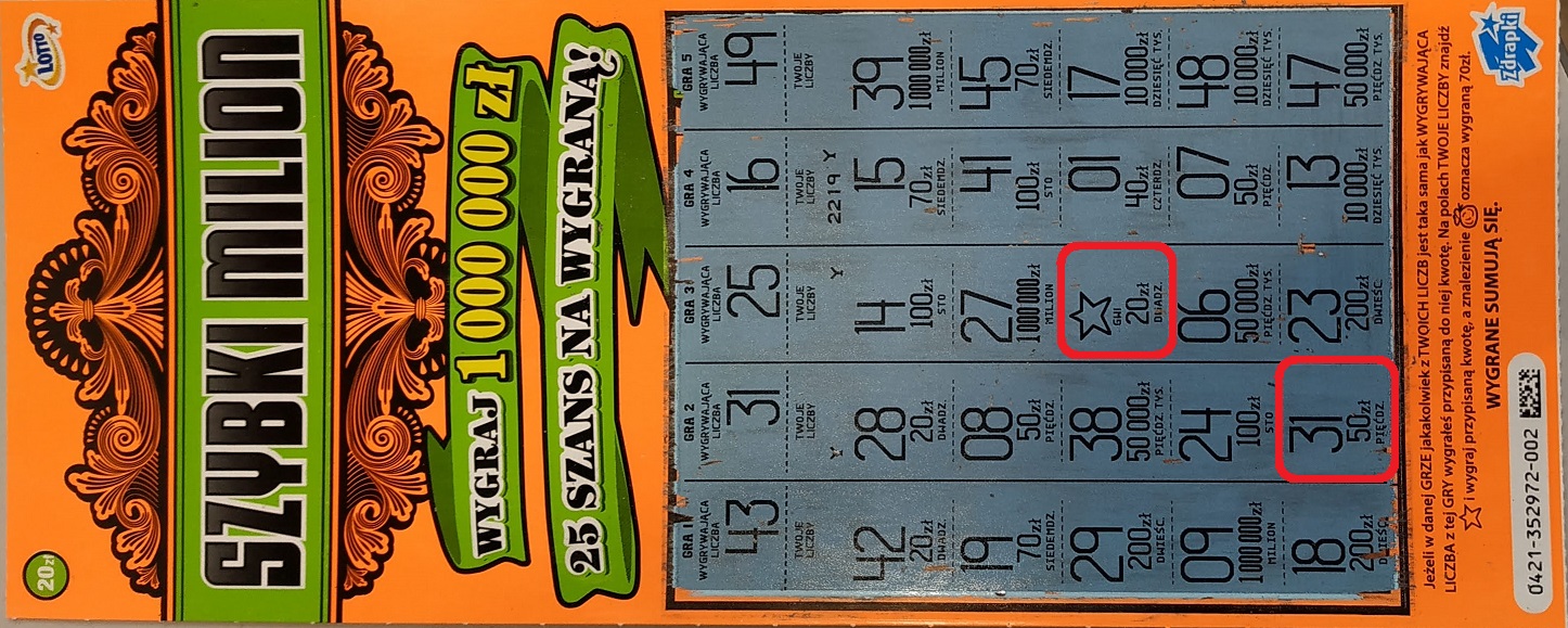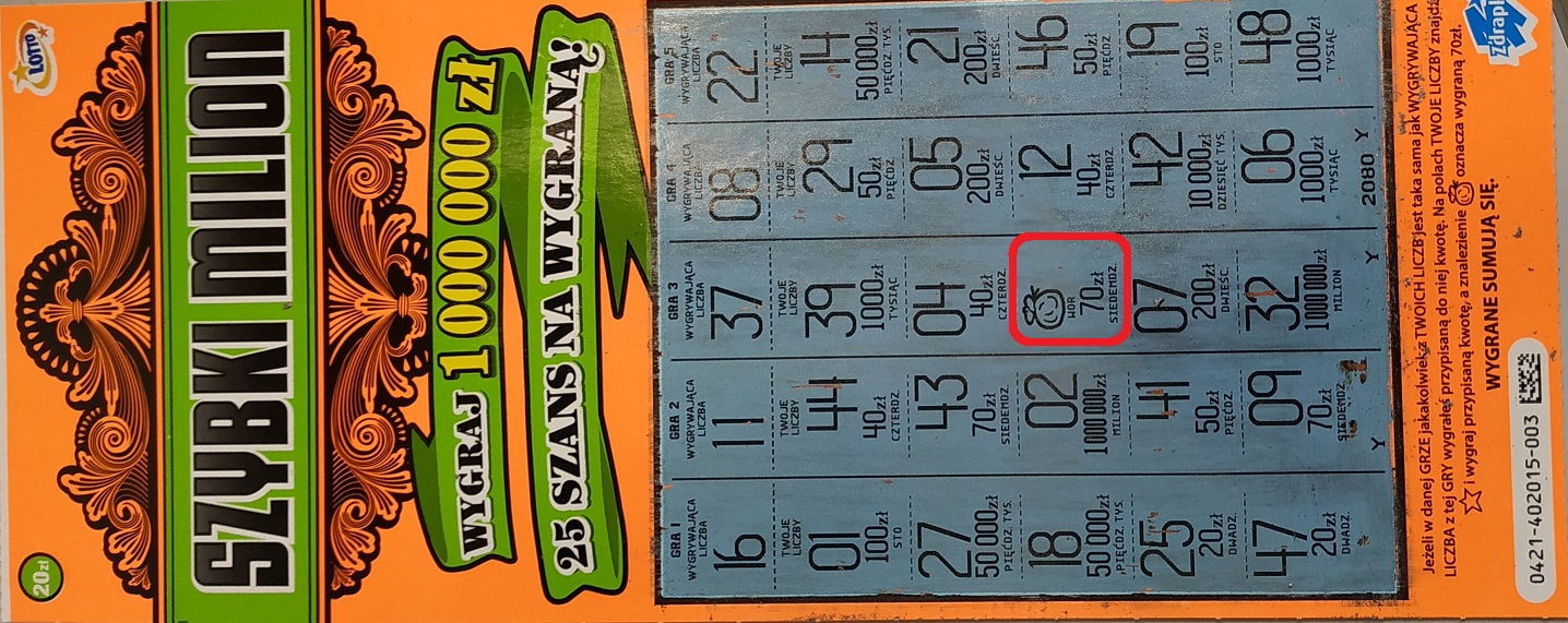 Fajnie to wygląda. A dużo musiałeś zainwestować, żeby te dwie 70-ki "wyłowić"? Ile wydałeś, a ile łącznie wygrałeś? Było jeszcze jakieś 20zł?