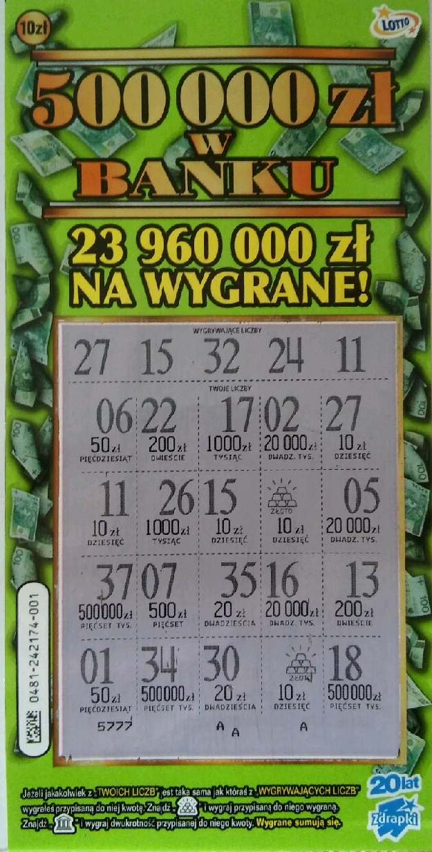 Wygraną 46 zł w w Mini zamieniłam/przeznaczyłam dziś na zdrapki (bank w Bankowej, 7-ka w Premii i 40 zł w MSM)