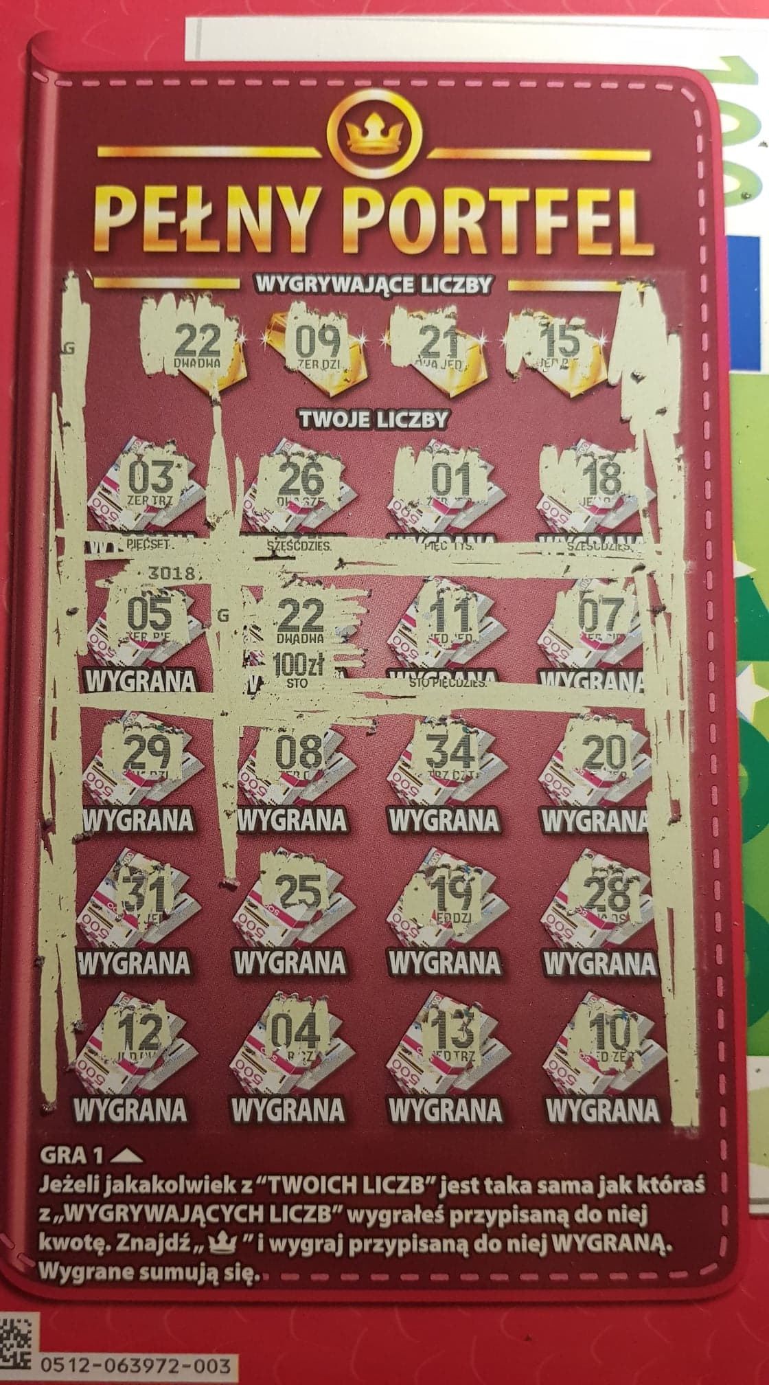 Wziąłem dziś każdą zdrapkę po 30zł i tylko Portfel dał wygrać 60zł.