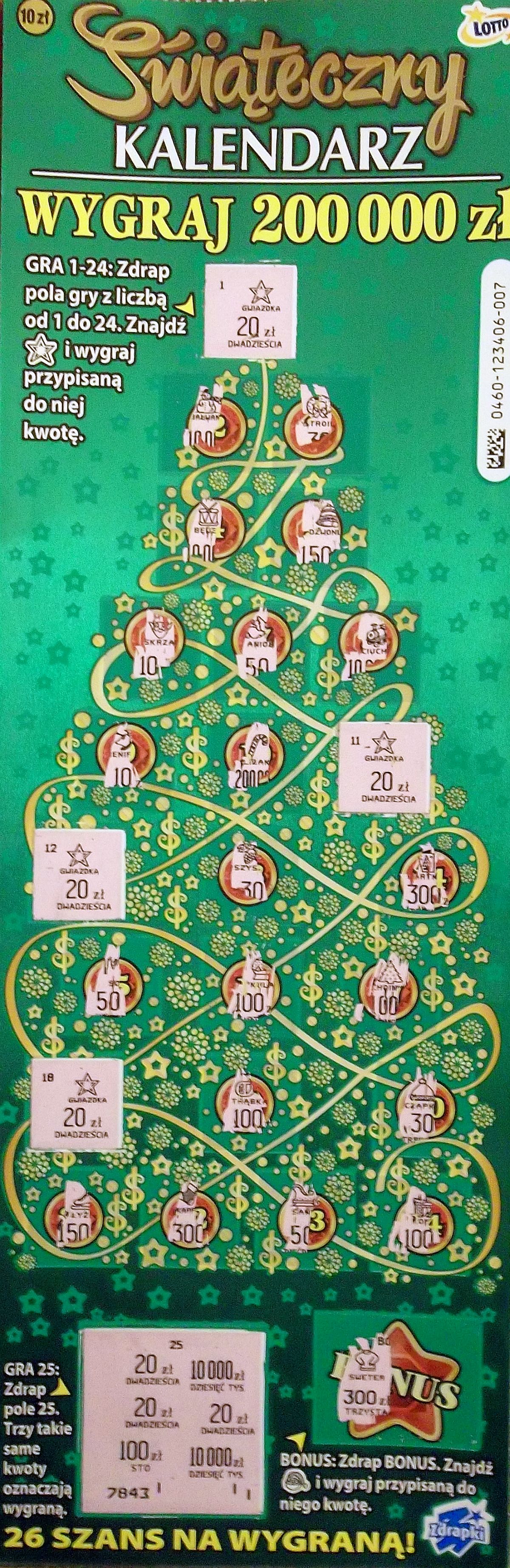 Dzisiaj jedna sztuka i w polu bonusu Mikołaj i 10 zł