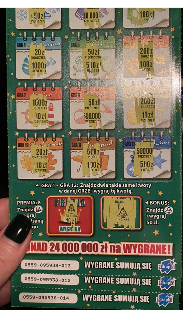 Czyli warto się zainteresować GCgrzybek pisze: ↑08 gru 2022, 16:57W tej zdrapce dodruk jest po każdej transzy więc interesuje nas wszystko powyżej 090xxx.