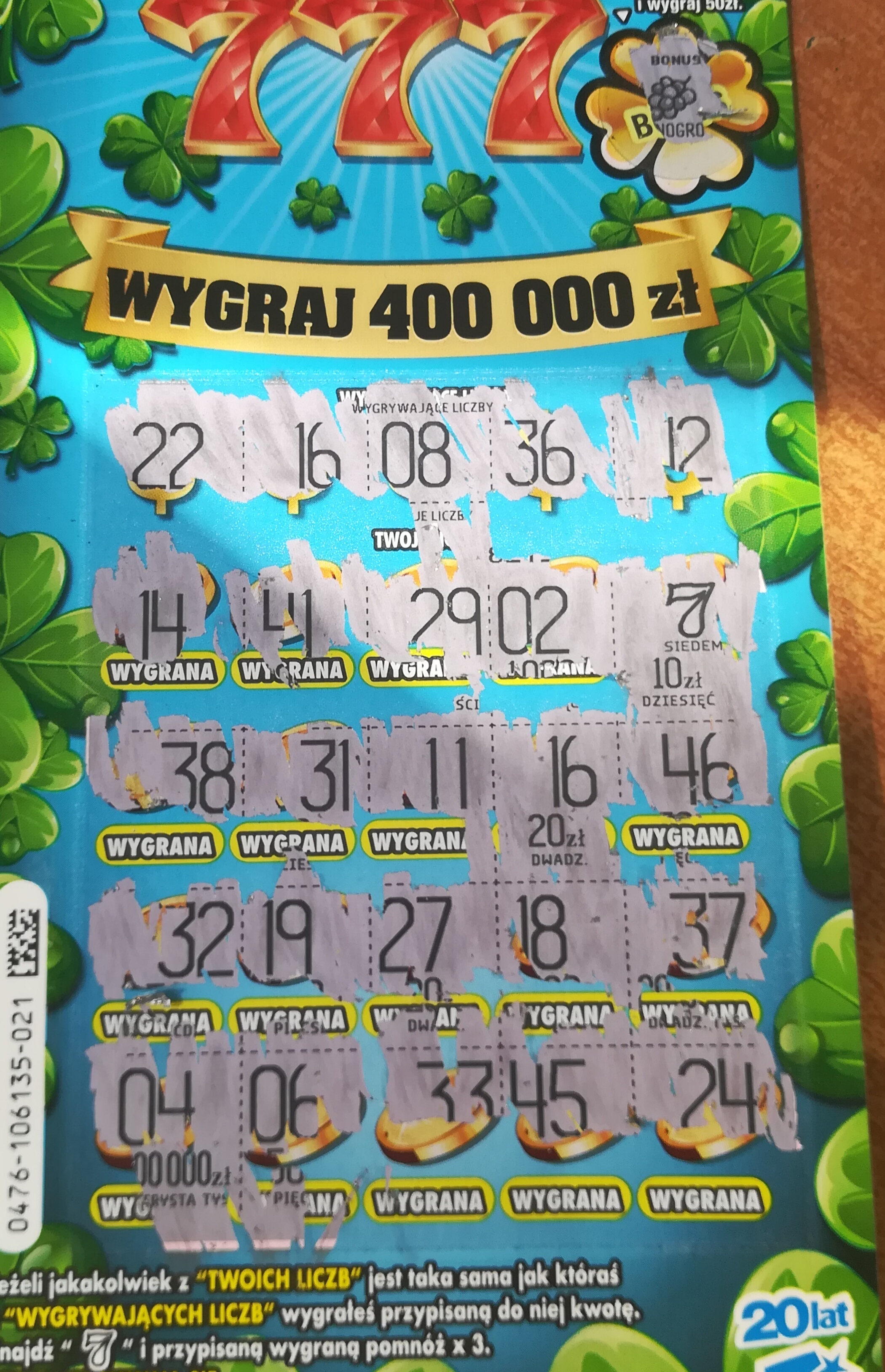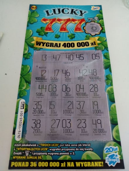 Numer 007 pusty, 008 10 zł, 009 10 zł, 010 50 zł, 011 pusty, 012 10 zł, 013 pusty, 014 10 zł.Także pełne zdrapki w numeracji bardzo blisko siebie.