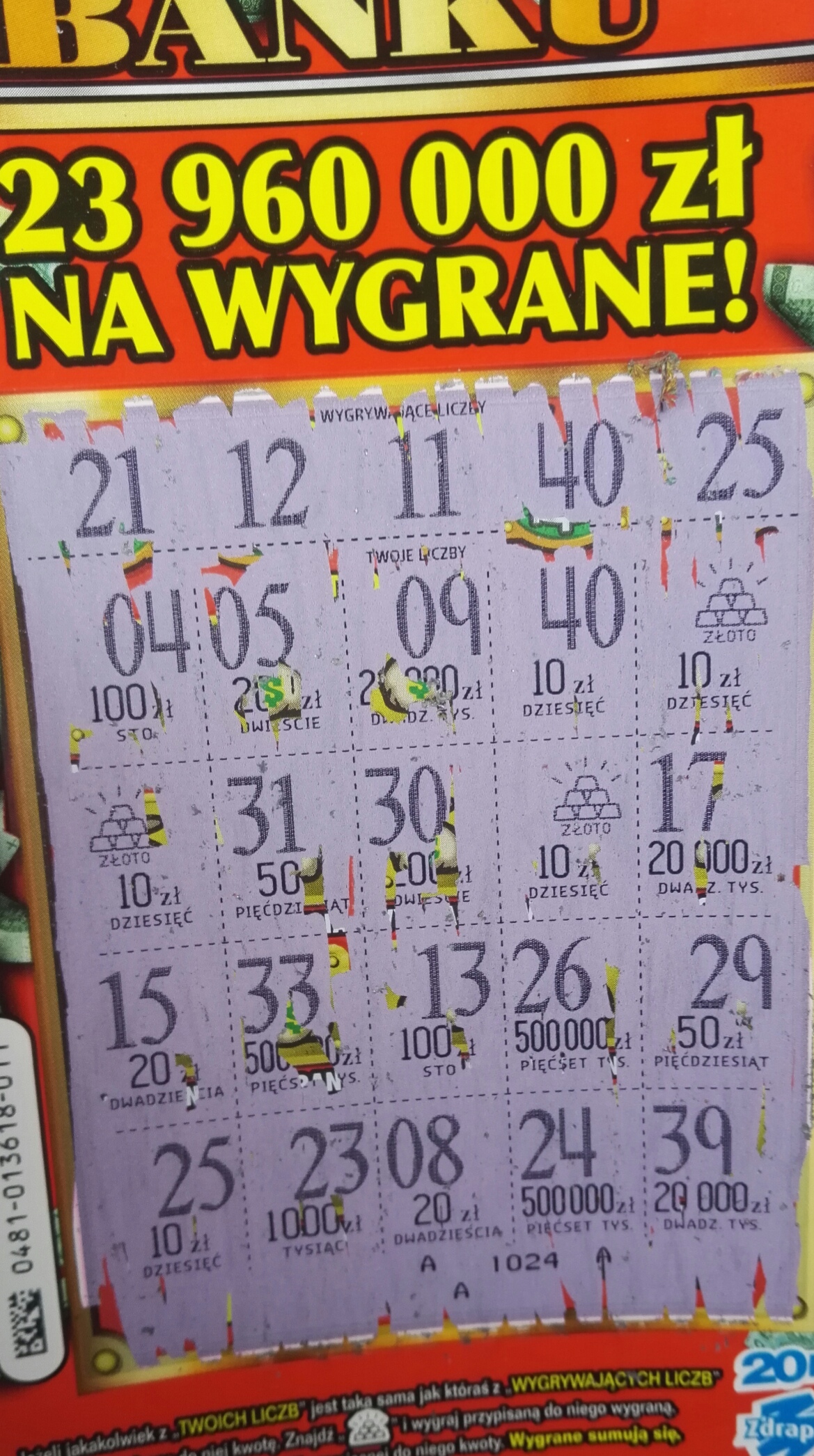 Totalizator Sportowy Sp. z o.o. informuje, że termin zakończenia sprzedaży losów loterii pieniężnej "500 000 ZŁ W BANKU " gra nr 0481 został ustalony na dzień 05.02.2020 r.