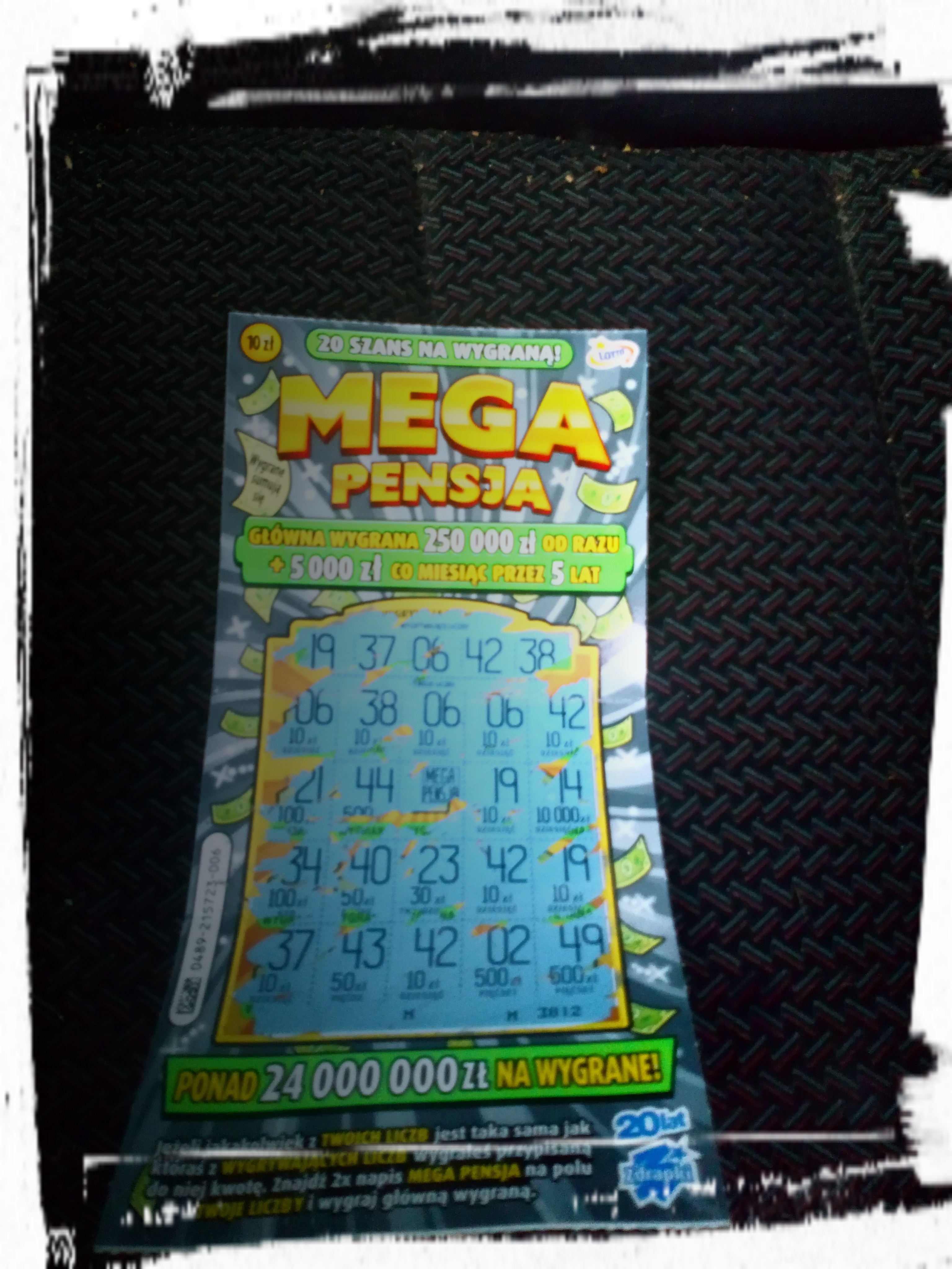Warstwa fajna, ale z plusów to na tyle... Mimo przerwy w drapaniu, której bardzo dobrze się trzymam, pokusiłem się na 10 sztuk, wziąłem zdrapki po kolei od 1 numeru, wydrapalem 20 zł, co tylko potwierdziło moje przekonanie żeby dać sobie spokój