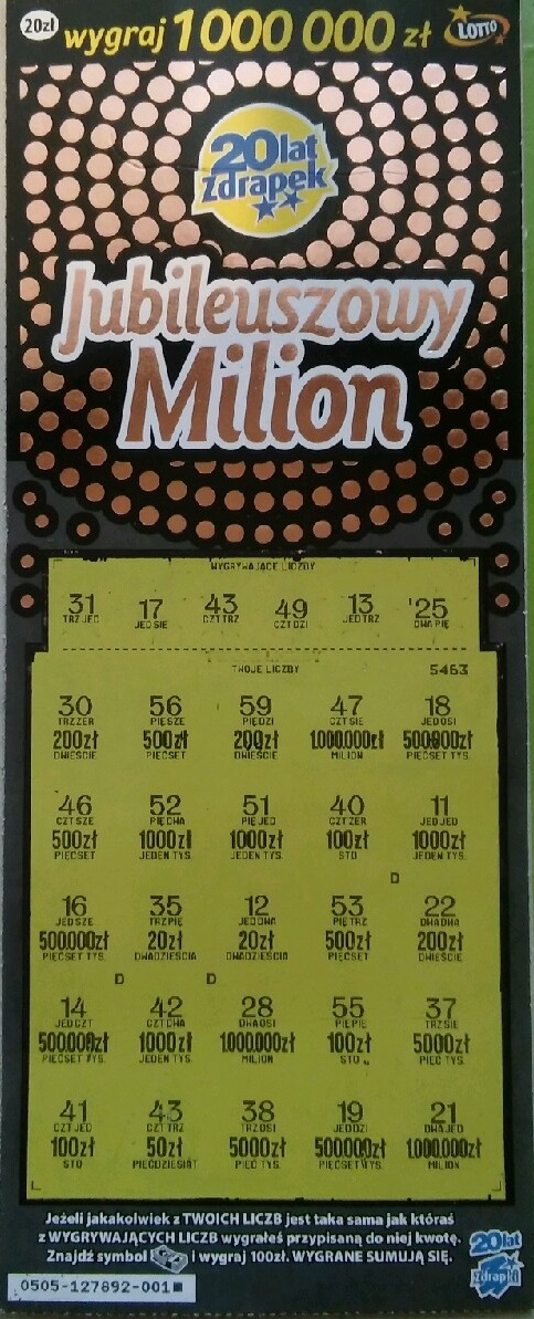 Tak to w większości przypadków przy kupnie paczki wygląda. Ogólnie kupowanie paczek się nie opłaca, chyba że poluje się na główną przy dużej wyprzedaży zdrapki.