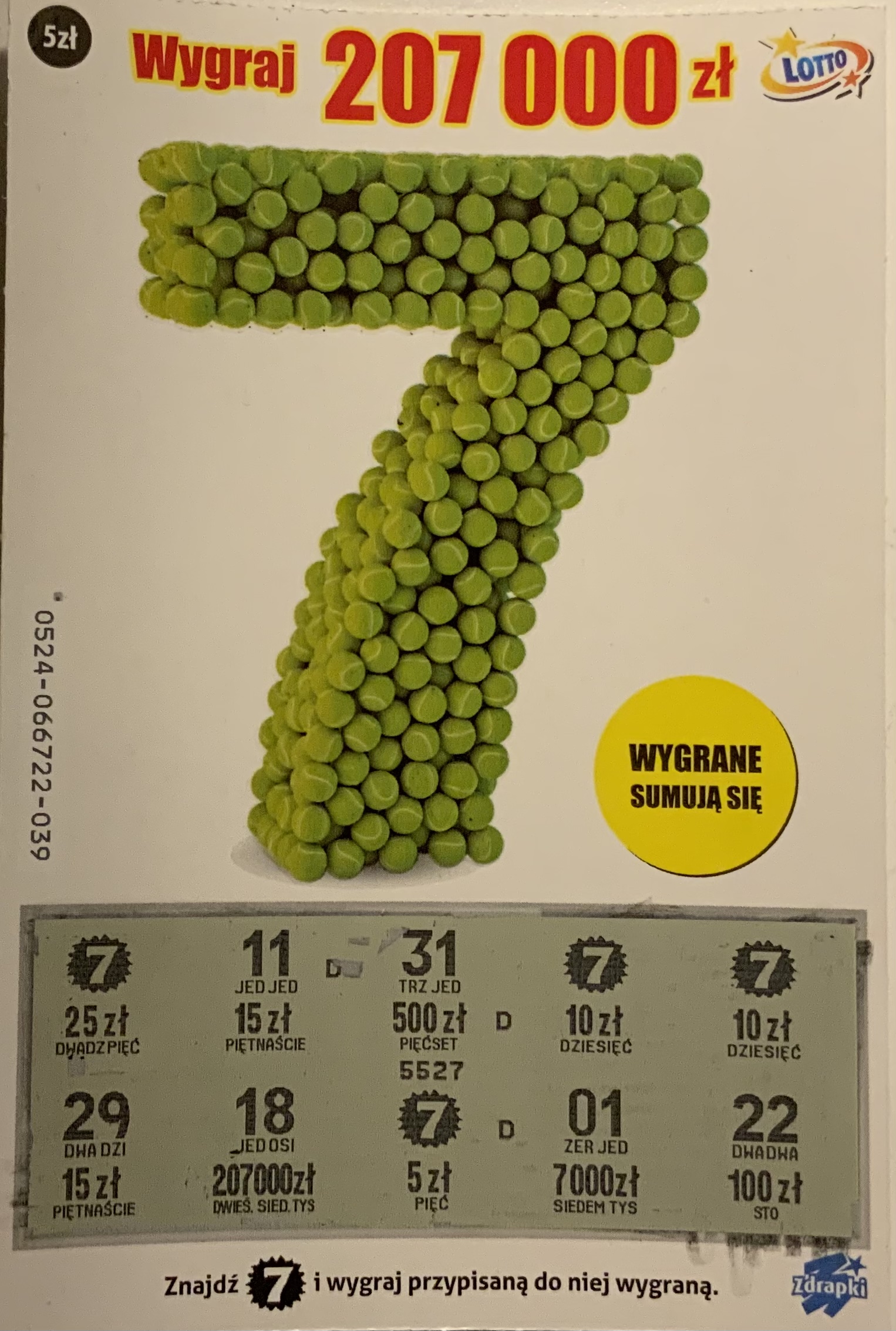 Rano wzięłam w swoim sklepiku ostatnią sztukę z nr 045 i wpadło 10 zeta (dwie 7-ki)