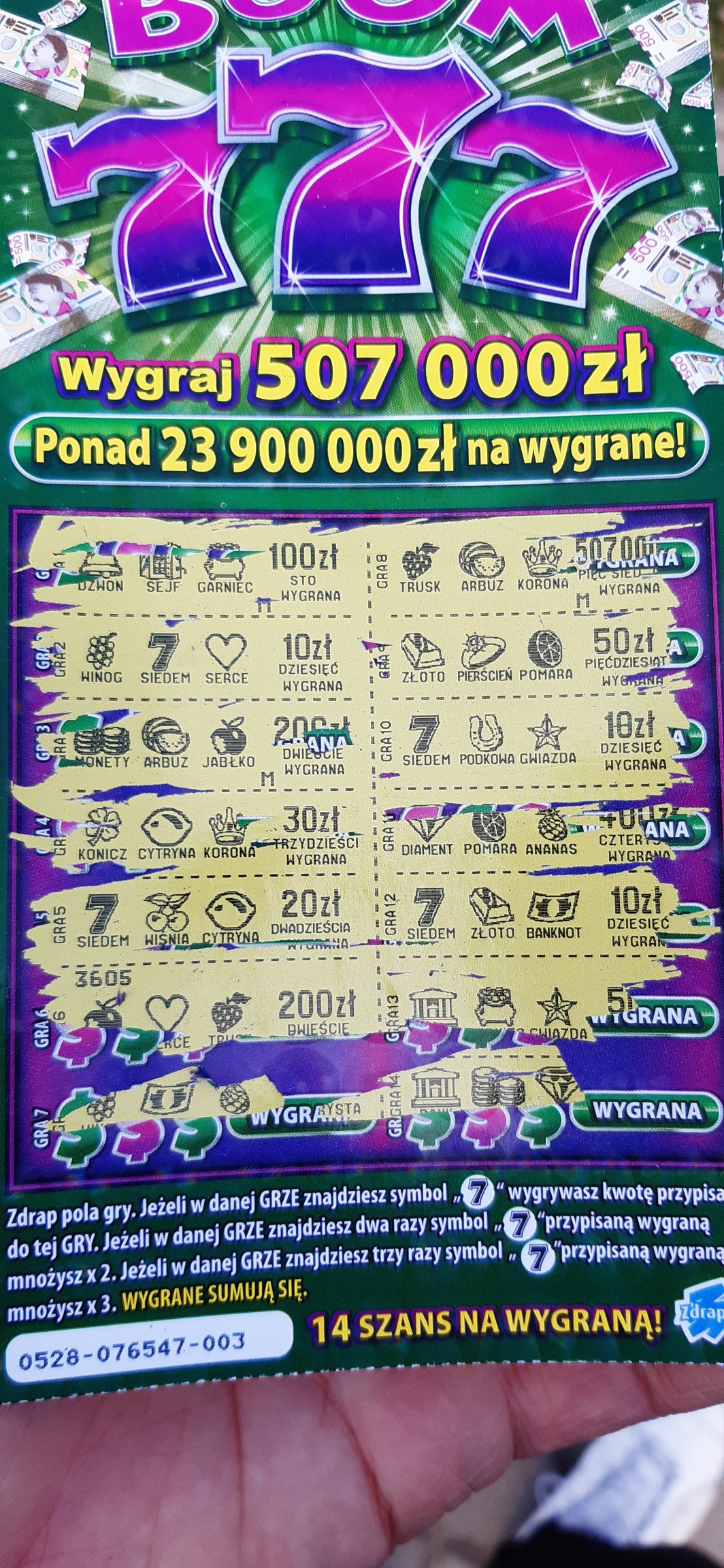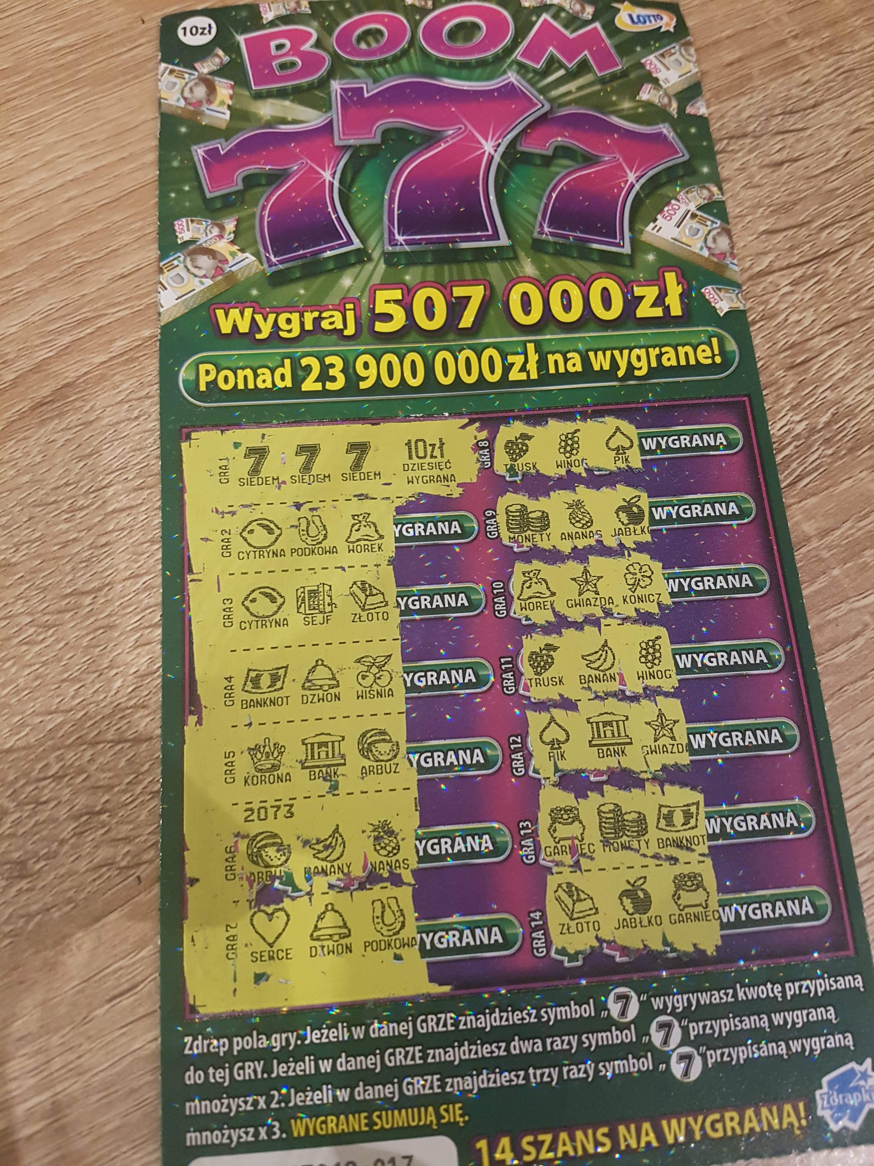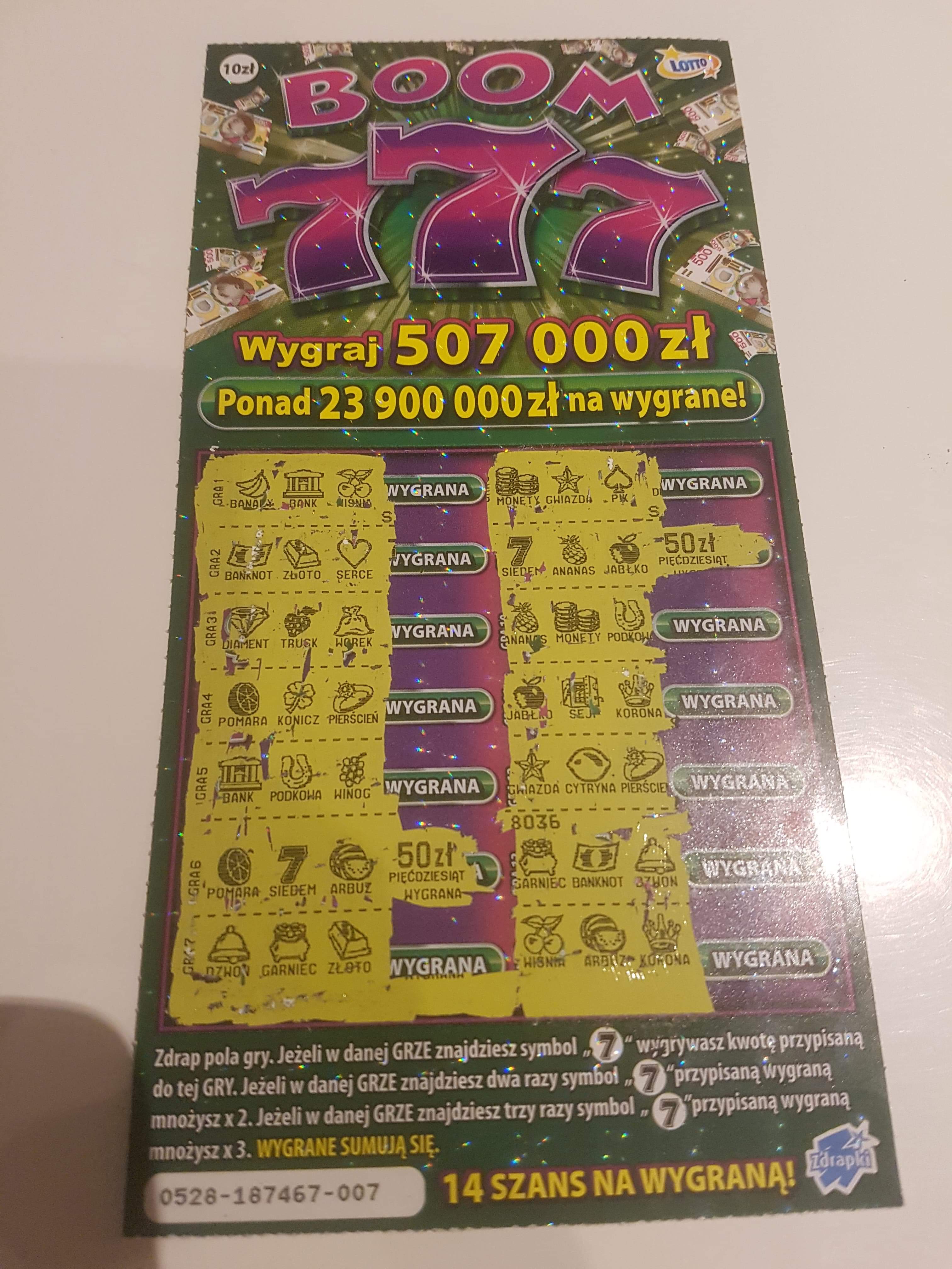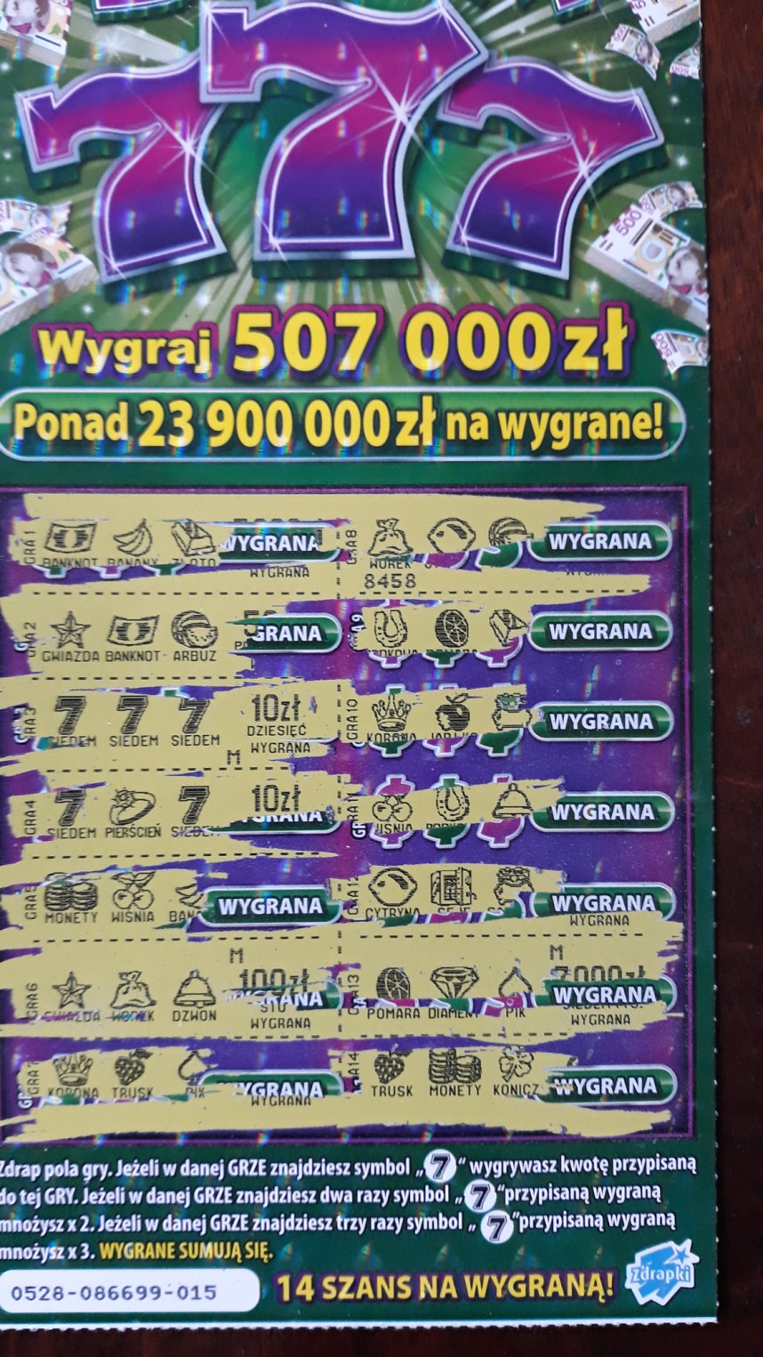 A tak na poważnie - mam swoje podsumowanie zdrapkowe i od czasu 75 zł w poprzedniej edycji Super Linii (pod koniec października) rarytasem jest, żebym miał zwrot. Coś więcej to już w ogóle cud. Tylko że ja biorę zdrapki do 5 zł, bardzo rzadko coś droższego. Ogólnie próba jest mała, jednak zwrot na poziomie niecałych 21% jest trochę lipny. Także Kaszmir może mieć takiego mega pecha, w końcu w paczce więcej losów jest pustych jak wygranych.