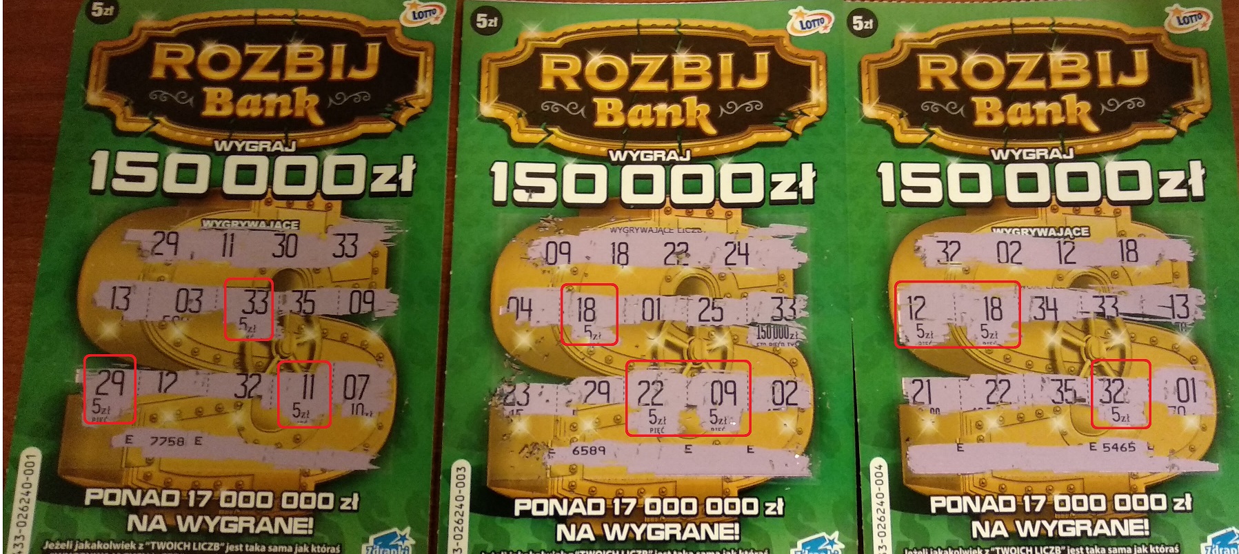 Wiem, że mamy zasady dotyczące minimum do zdjęć, ale natrafiłem na ciekawą sytuację. Zamieniłem 2 dyszki na 4 sztuki "Rozbij Bank" wrzuconej do zdrapkomatu.