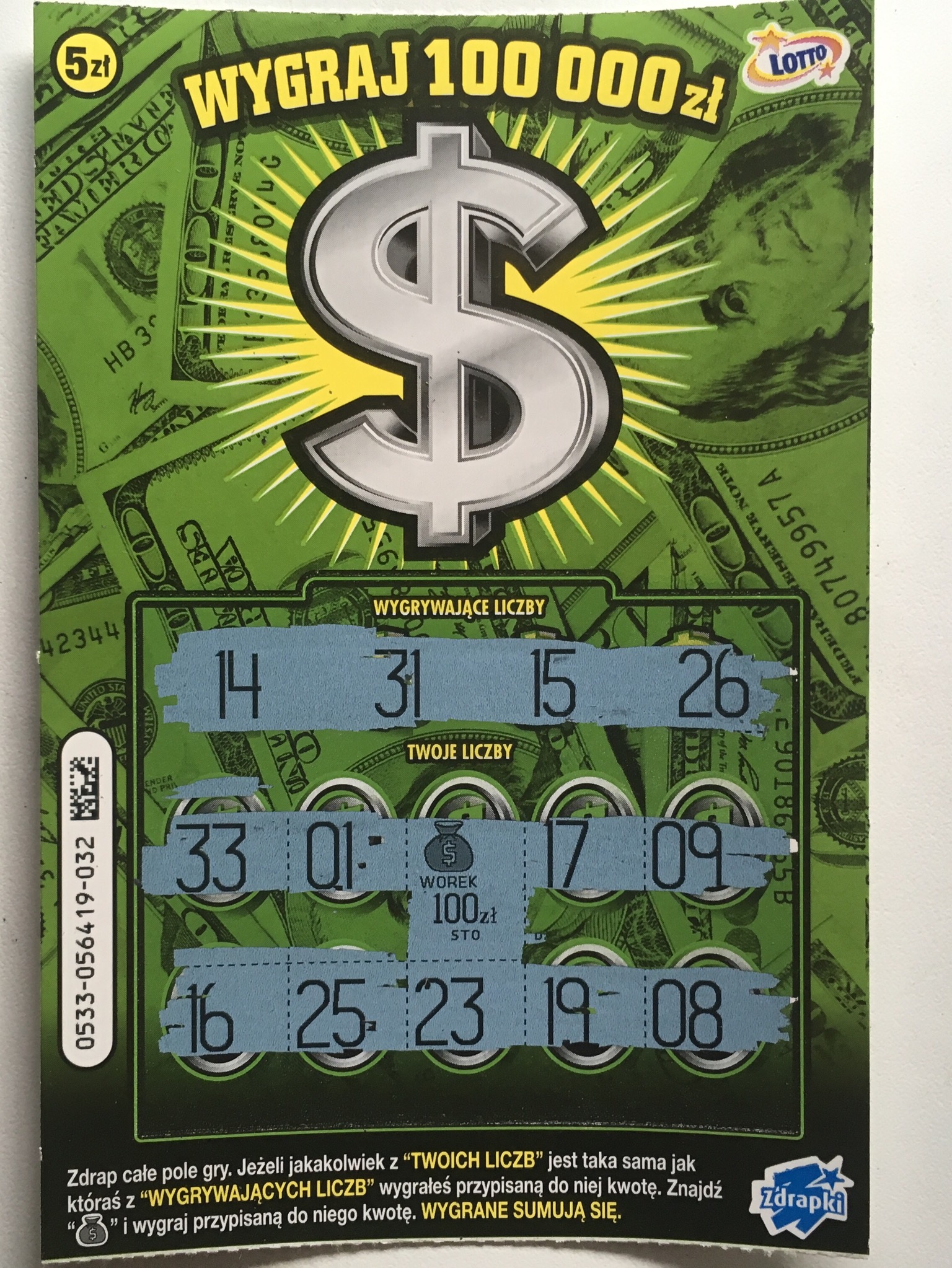 Dopiero na sam koniec wpadło 2x 20 zł w nr 018 i 044 oraz 50 zł w nr 010![]()