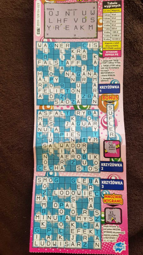 Mi jak dotąd kiepsko idzie. Cały tydzień kupuje codziennie po jednej krzyżówce i wszystkie puste. Już się zniechęciłam do tej zdrapki. Podobnie jest w liniach za 10zł.