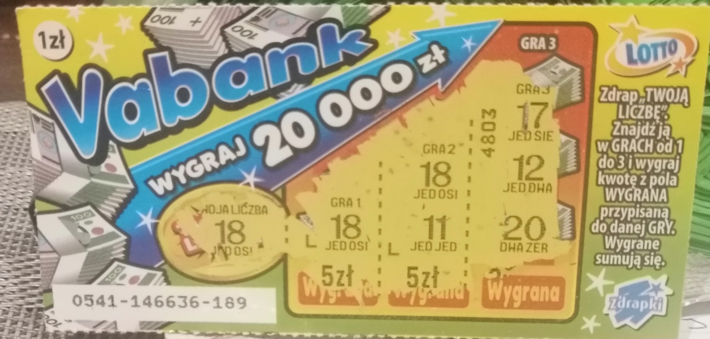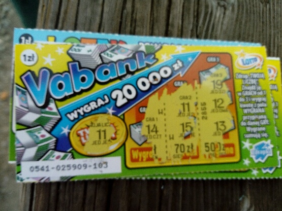 Wziąłem dzisiaj fast cash i vabanka. Drapałem na miejscu, w FC było 5zł, a vabanku 30zł, już drugie w tej edycji