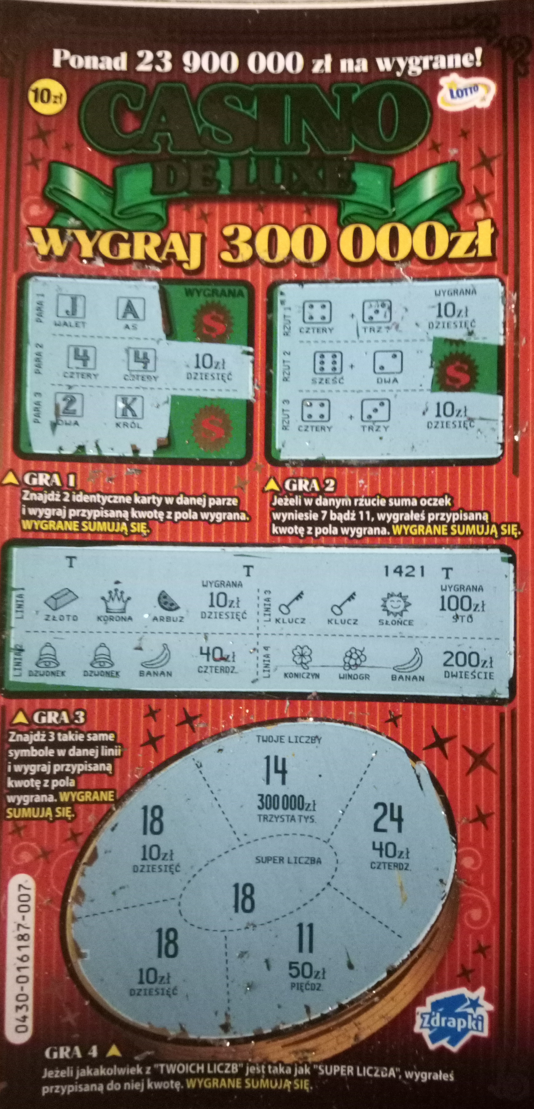 Końcówka tej zdrapki sobie leżała swobodnie - nikt nie chciał tego kupić