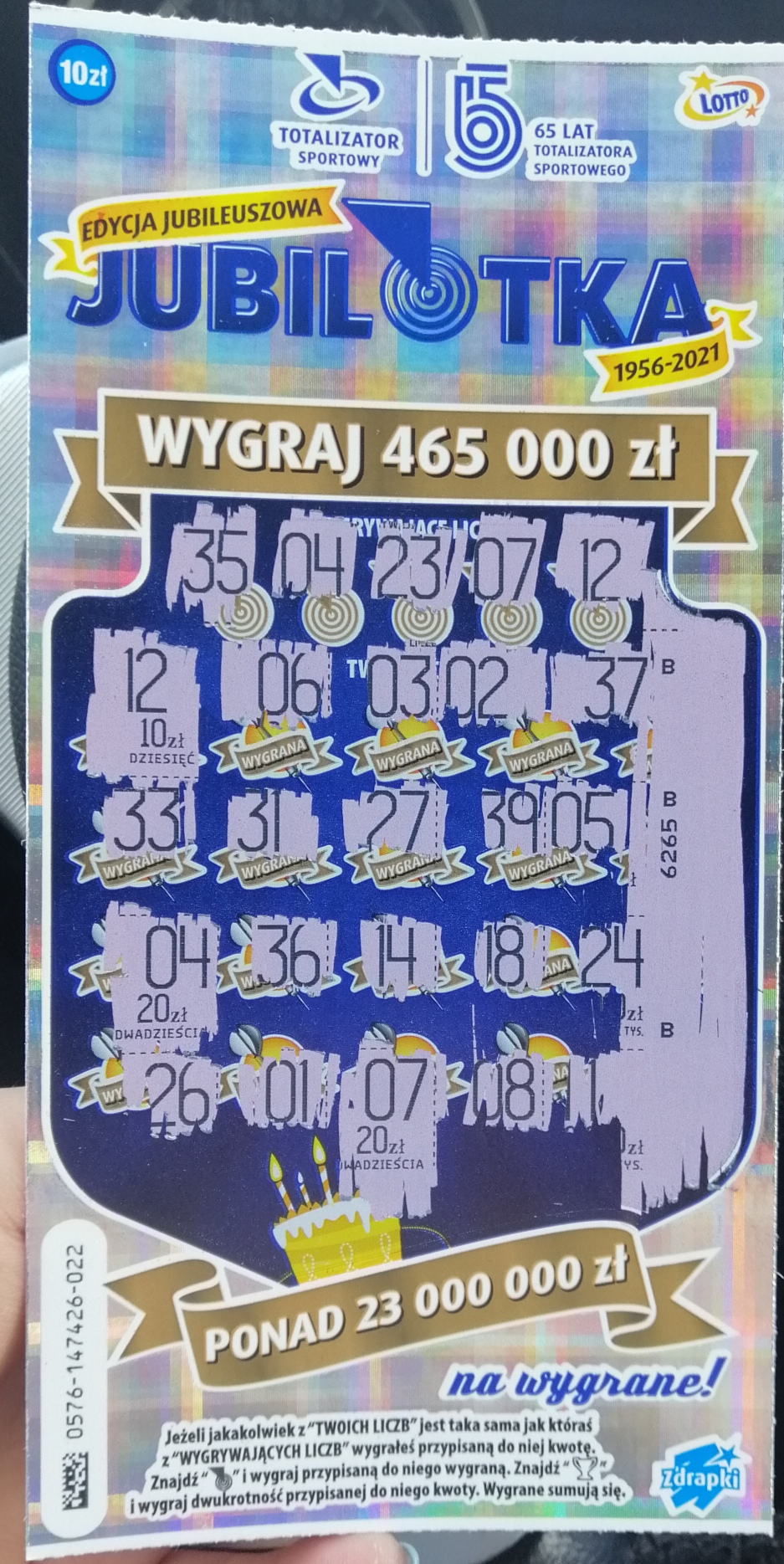 Jest i pisiont. Ciekawostka. Kupiłem od początku edycji 12 sztuk miałem 2razy 100zl i te dzisiejsze 50. Ale poza tym same pustaczki. Nigdy nawet zwrotki 10 zł