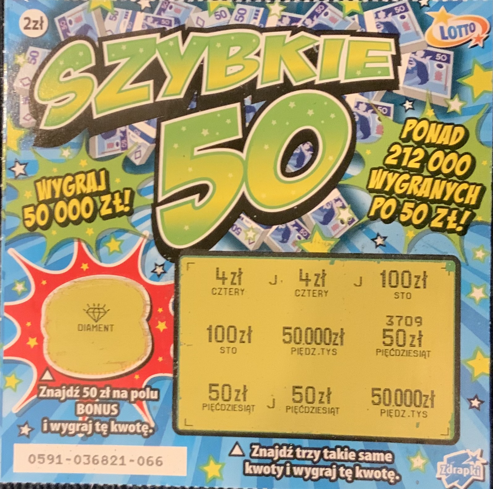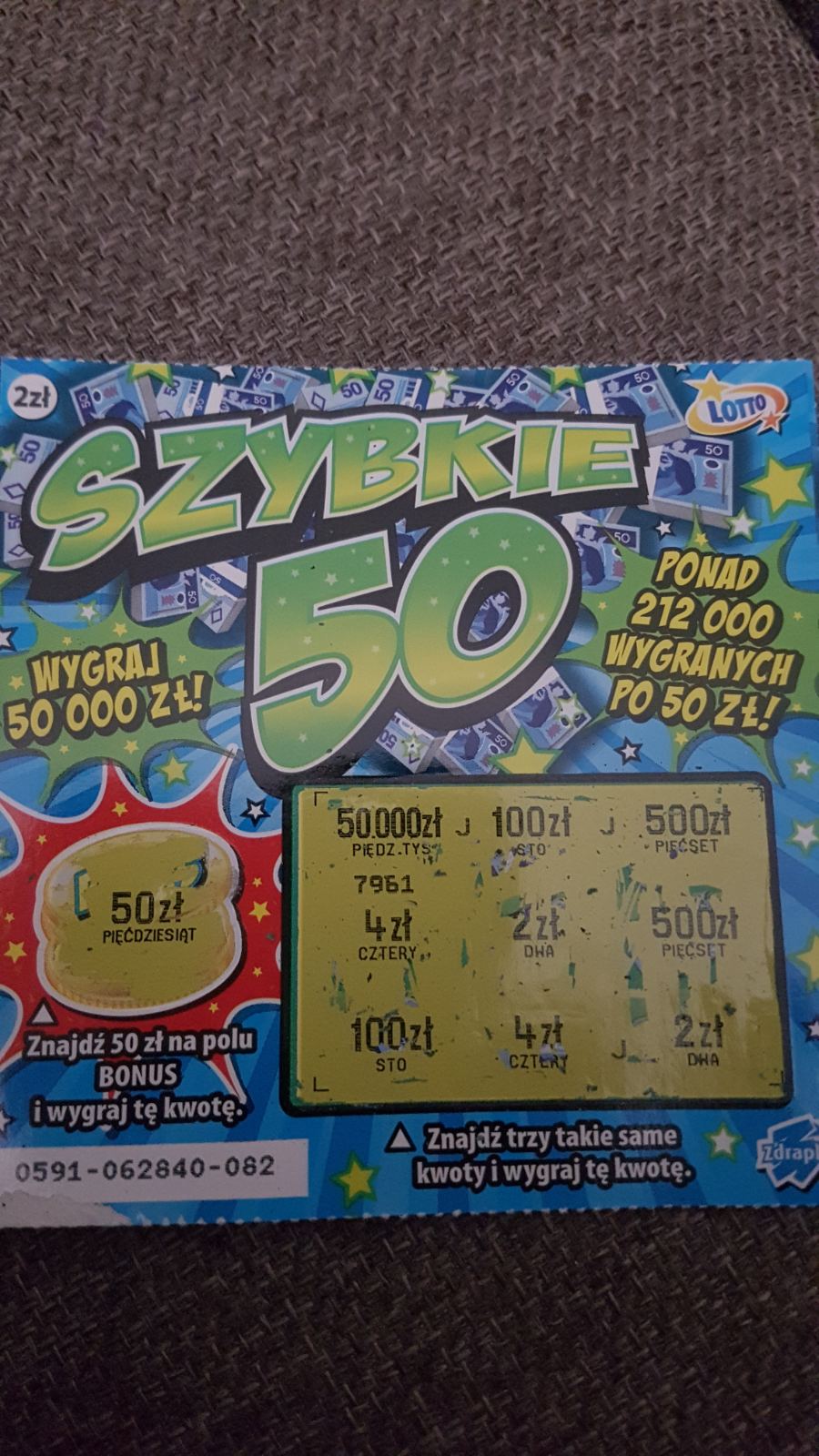 Kupiłam dwie różne zdrapki po dwa zł i w szybkim 50 trafiłam pierwszy raz 50zł i to w bonusie.