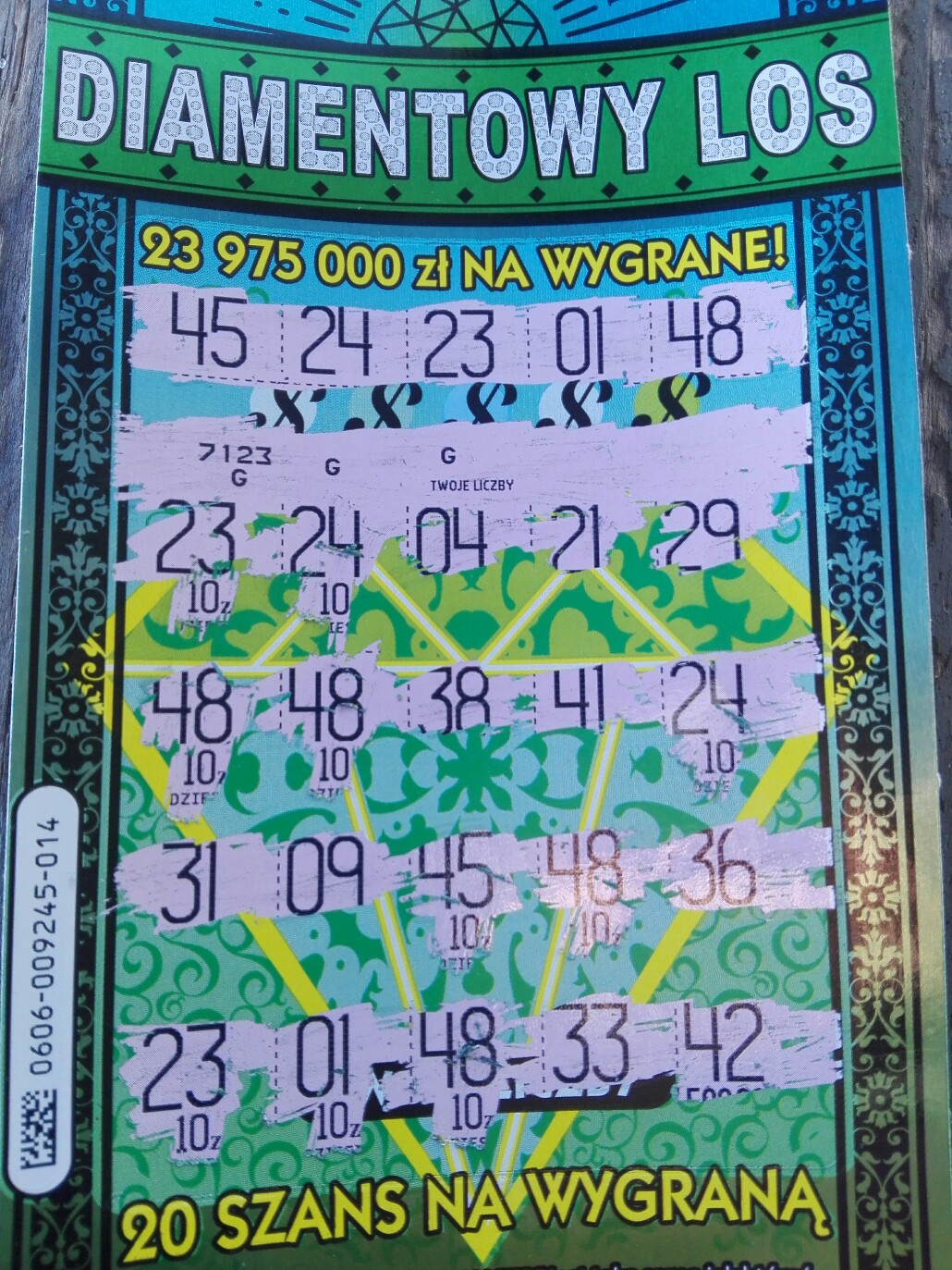 Diamentowy Los ma potencjał by zastąpić moją ulubioną Żołądkową de Luxe. Dziś wpadła po raz drugi 50-tka przy zakupie 1 sztuki (003). Ogółem na kupionych kilka sztuk tej zdrapki trafiłem 2x 50 zł, 1x 30 zł, 1x 20 zł a więc całkiem spoko. Teraz czas upolować coś od 50 zł w górę w tabeli wygranych