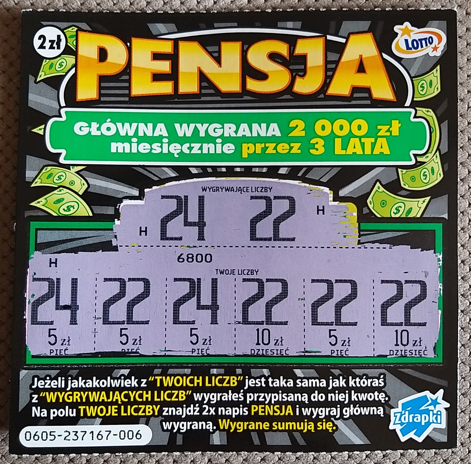 Dziś postawiłam na mini lotto i lotto, ale zdrapka musiała być