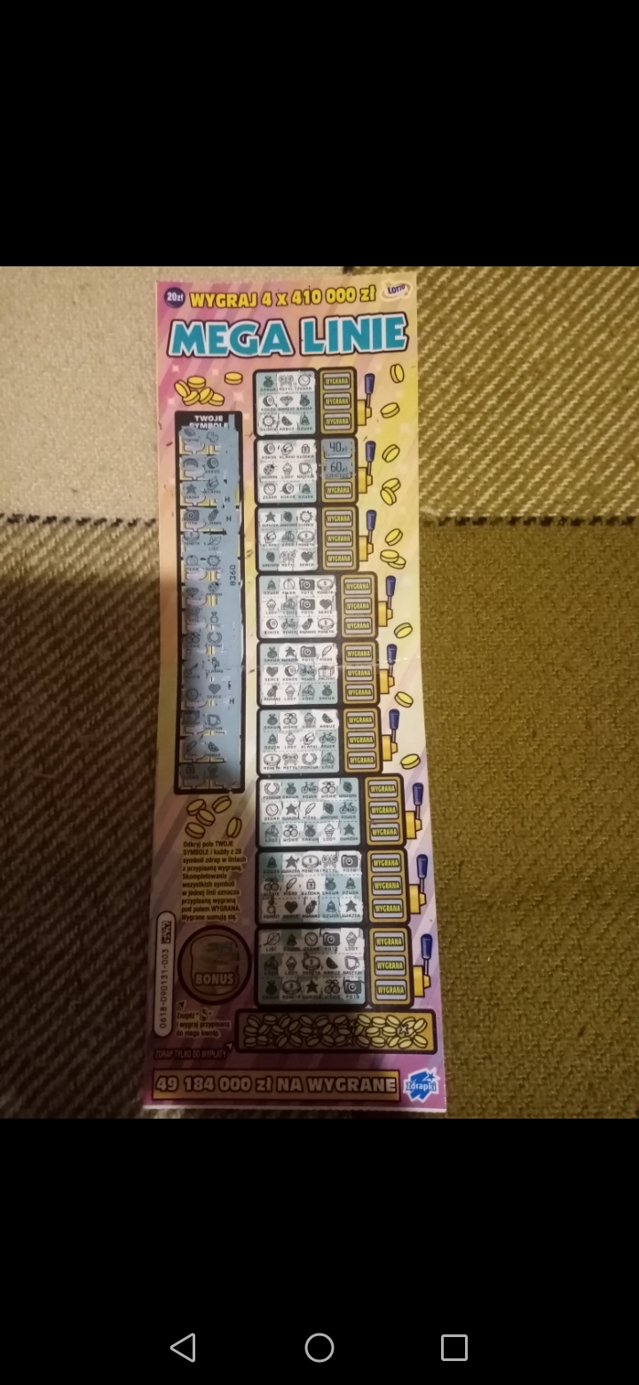 Takiego farta w losach po 20zł nie miałem nigdy. Od wczorajszej premiery kupiłem łącznie 5 Mega Linii. Wiecie jaki jest wynik? Sam jestem w szoku bo tylko 1 los pusty a pozostałe 2 x 20zł i 2 x 100zł
