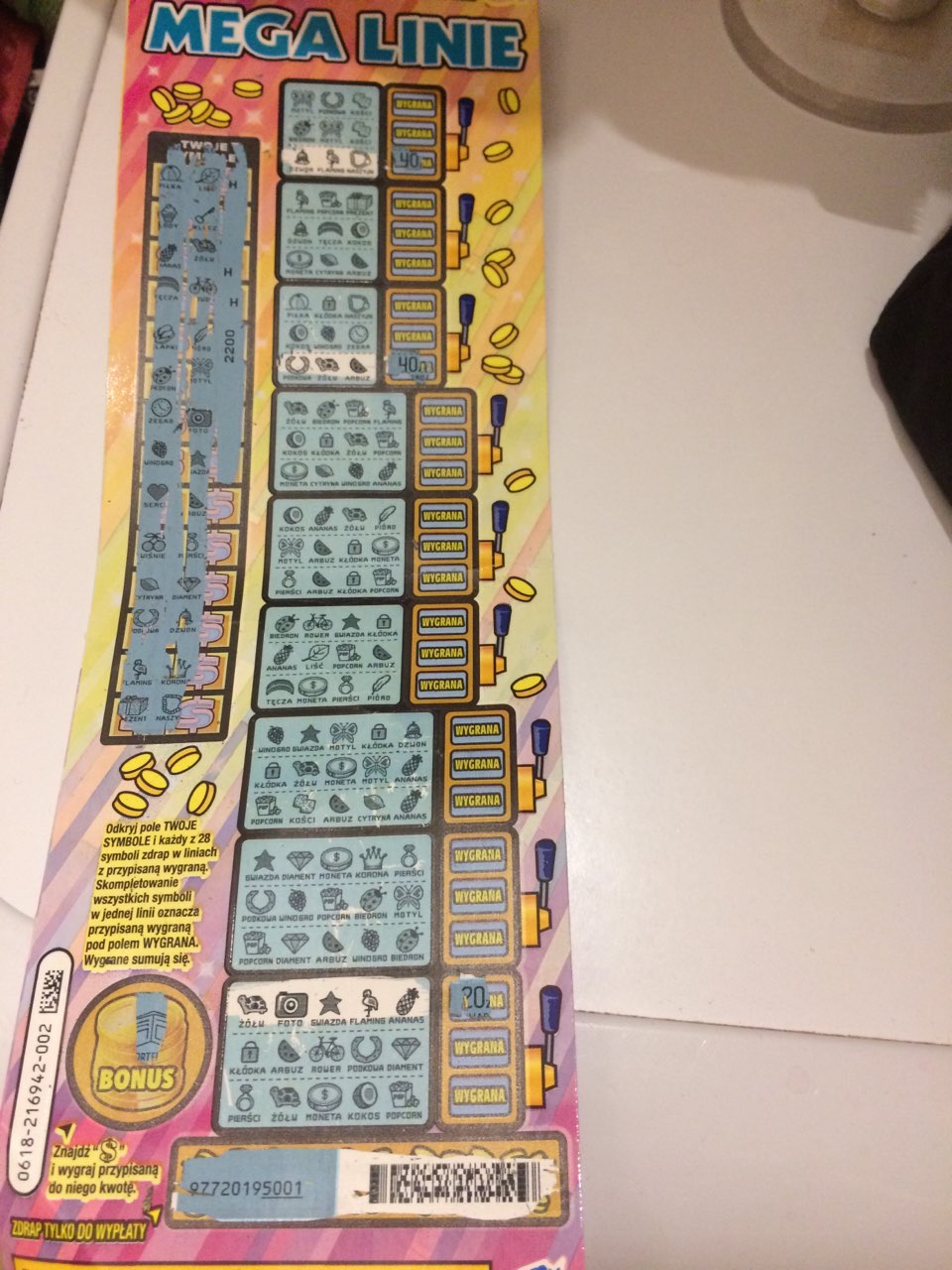 Od poprzedniego postu kupiłem raz 2 ostatnie sztuki z paczki gdzie na jednej było 40zł. Później 1szt która dała 20zł i wymienione na kolejną i pustak. I myślę że na tym poprzestanę, utarg z tej zdrapki mam niezły
