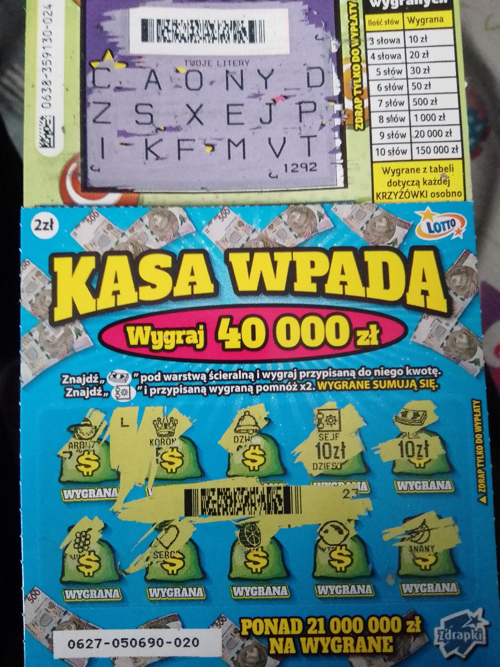 Dziś kupiłem zdrapek za 19zł, xxl-40, kasa-30, 2pensje-nic i 3koniczyny- raz zwrot.