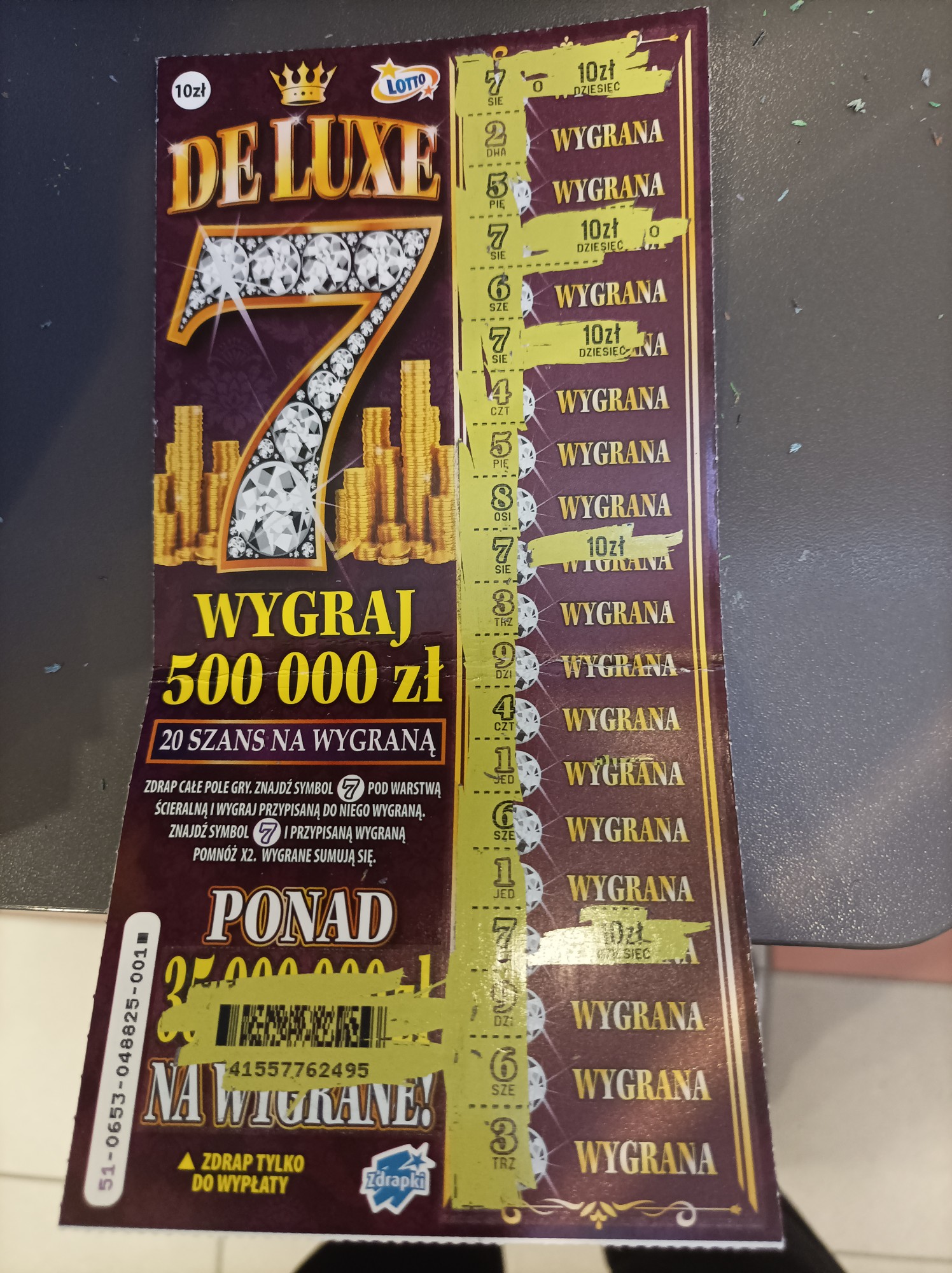 Na 10 kupionych zdrapek jedna wygrana 10 zł. Badziewie.