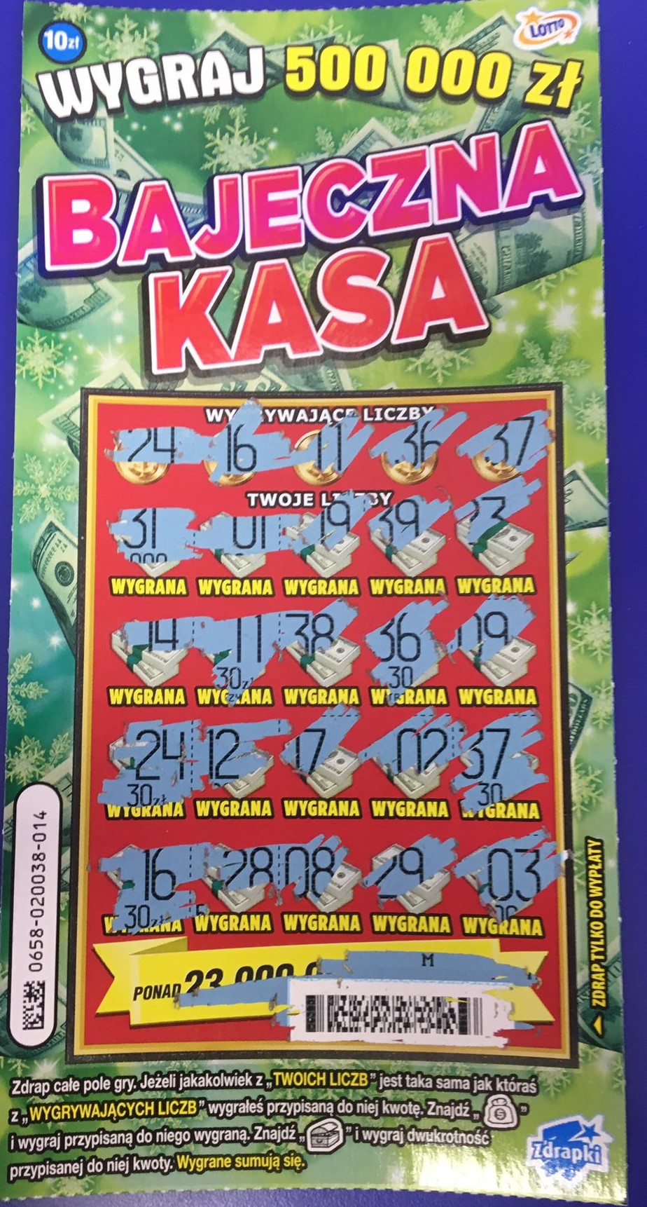 Dziś jedna sztuka z automatu i weszło 30 zł w nr 022 (symbol skrzyni plus liczba)