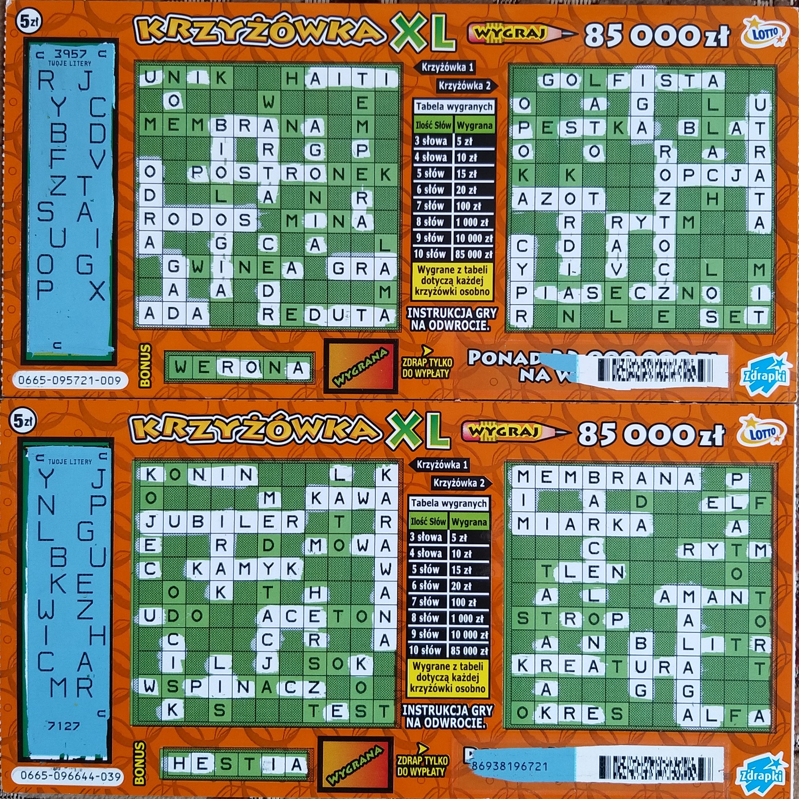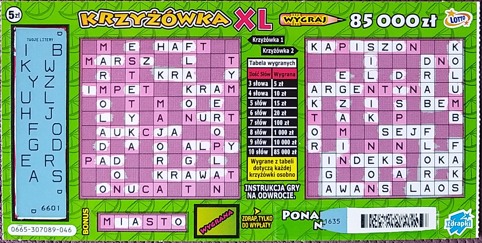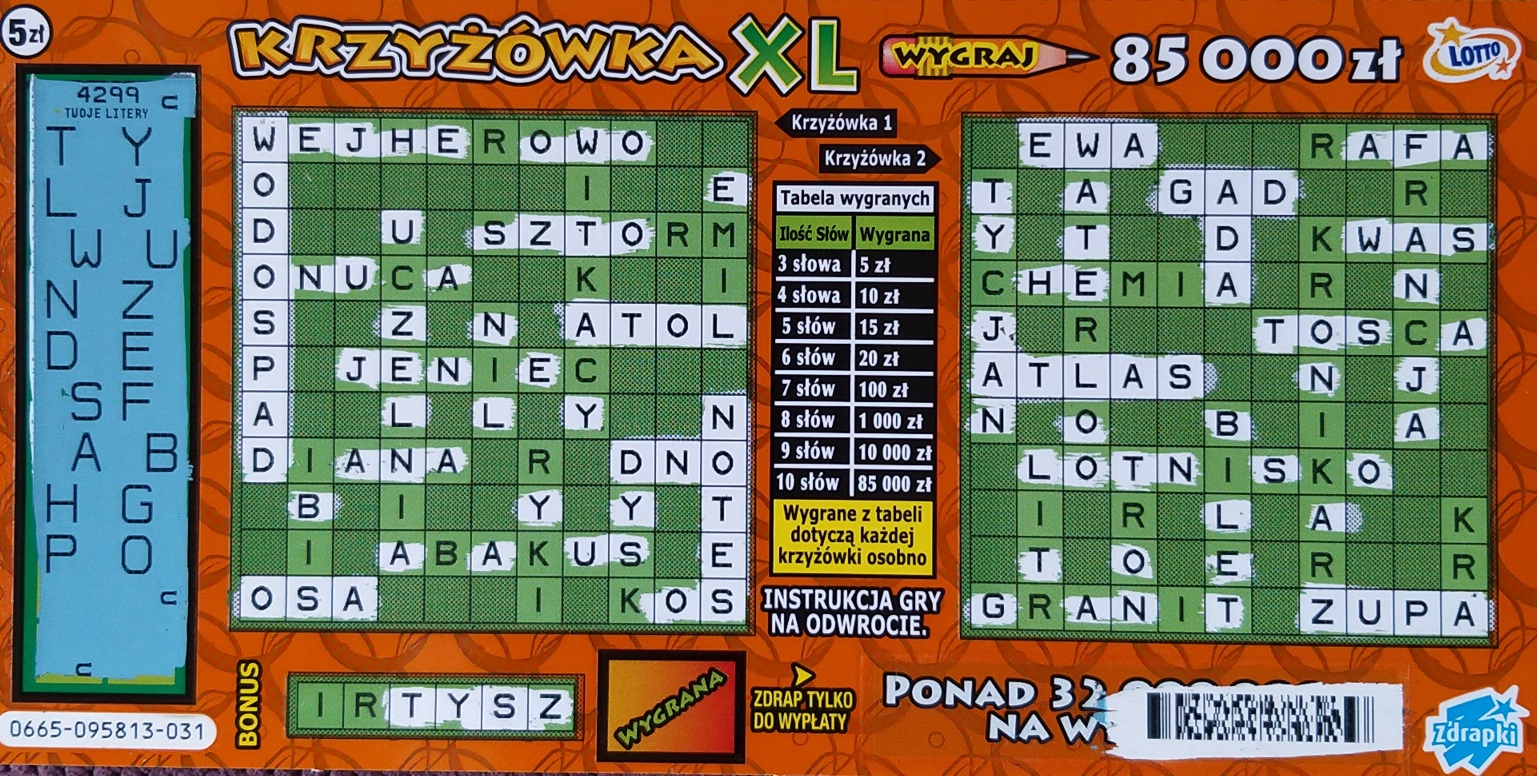 Wyjątkowo nie drapałem krzyżówki literka po literce tylko od razu szukałem całych słów, a to dlatego że bonus mi się nie podobał i myślałem że los będzie pusty a tu taki zwrot akcji!
