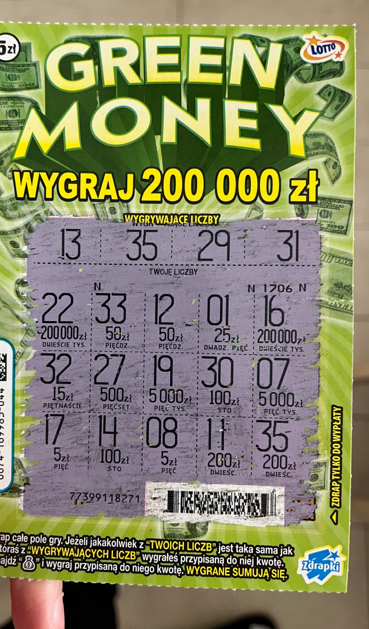 Ładniutka wygrana w zdrapce za piatkę. Gratulacje!