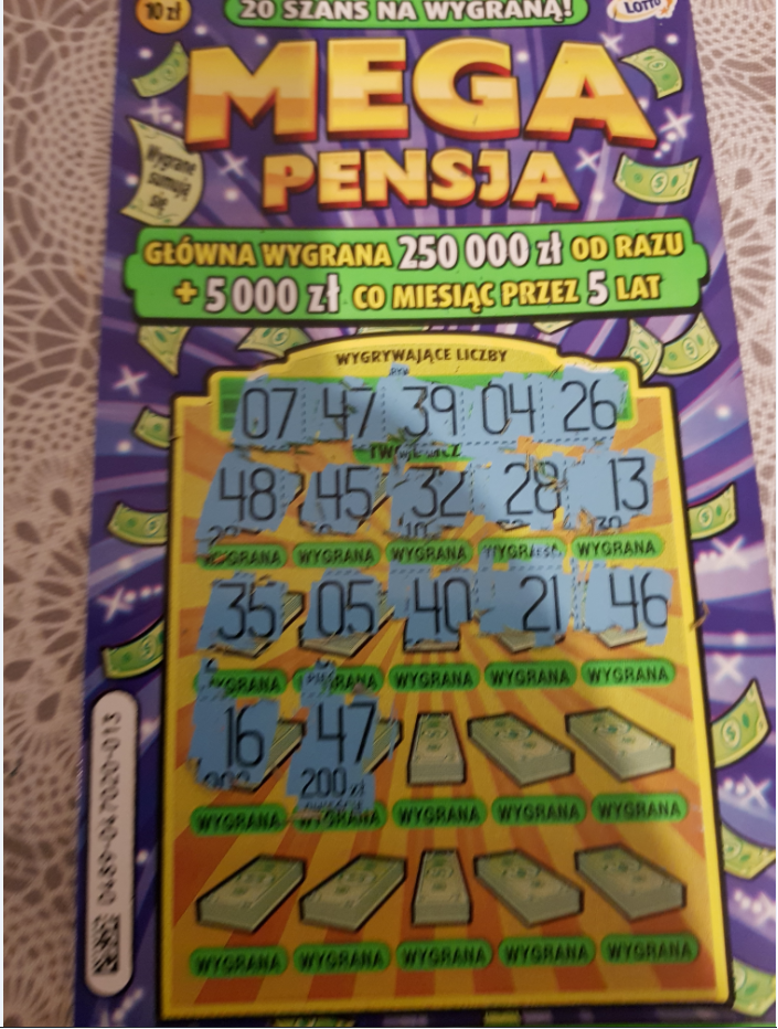 Z ostatnich kilku Mega Pensji jakie zostały w kolekturze wybrałam nr 001.Czułam, ze coś może w nim być i nie pomyliłam się, było 50 zł