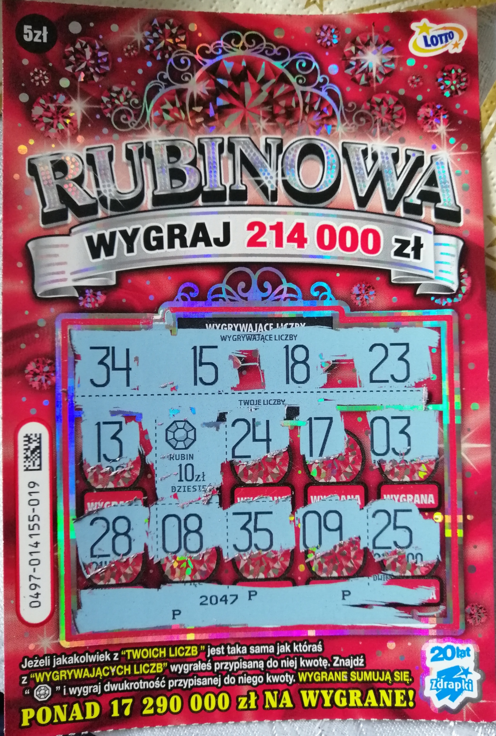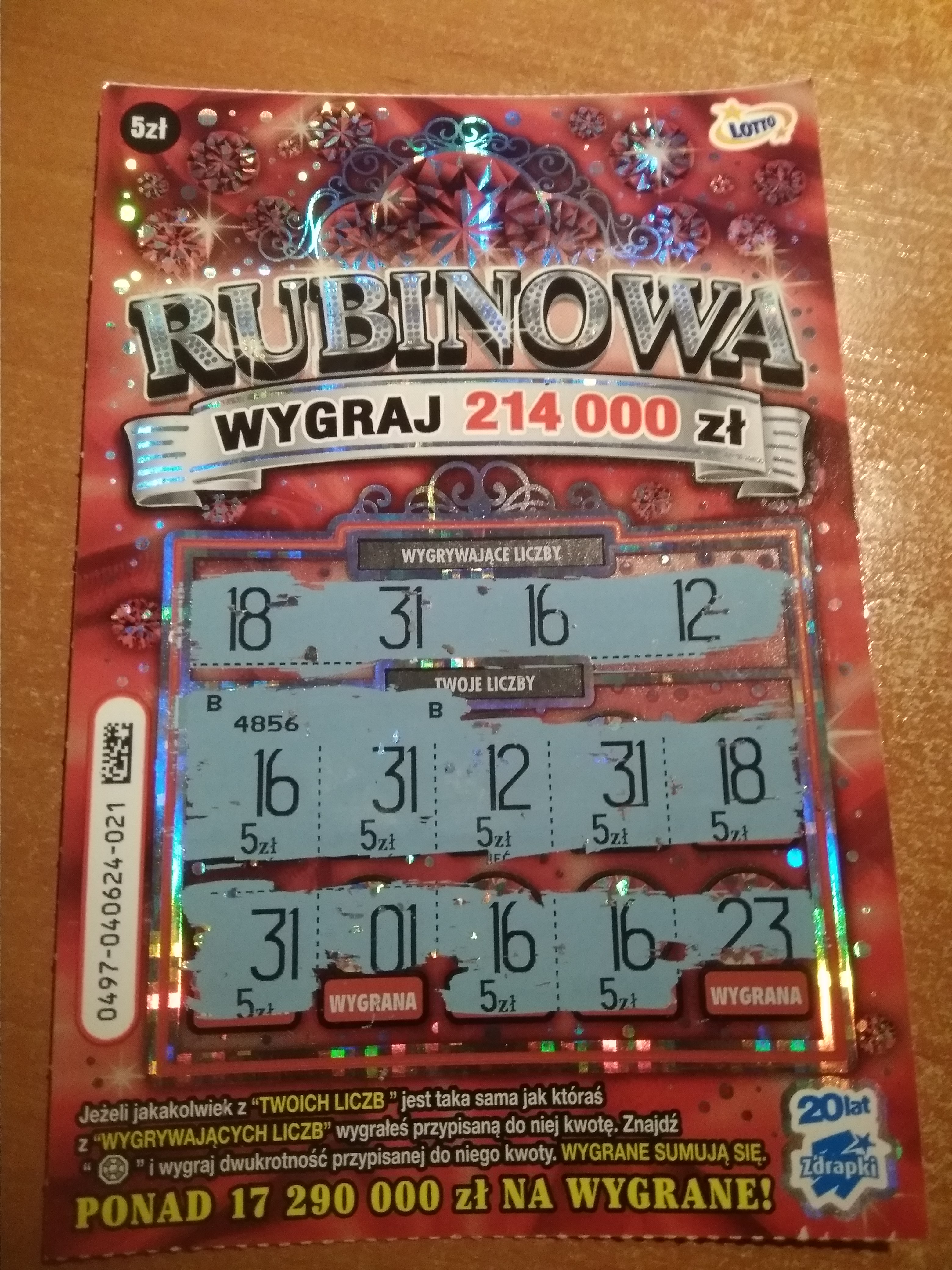 Rubin przytulił 20zl, pierwszy raz w tej zdrapce mam cos innego niz 5zl