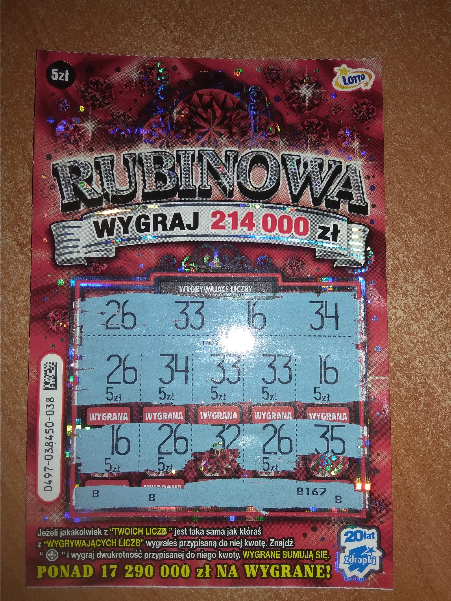 Dziś na dwie kupione dwie wygrane w nr 028 5 zł a w nr 048 20 zł