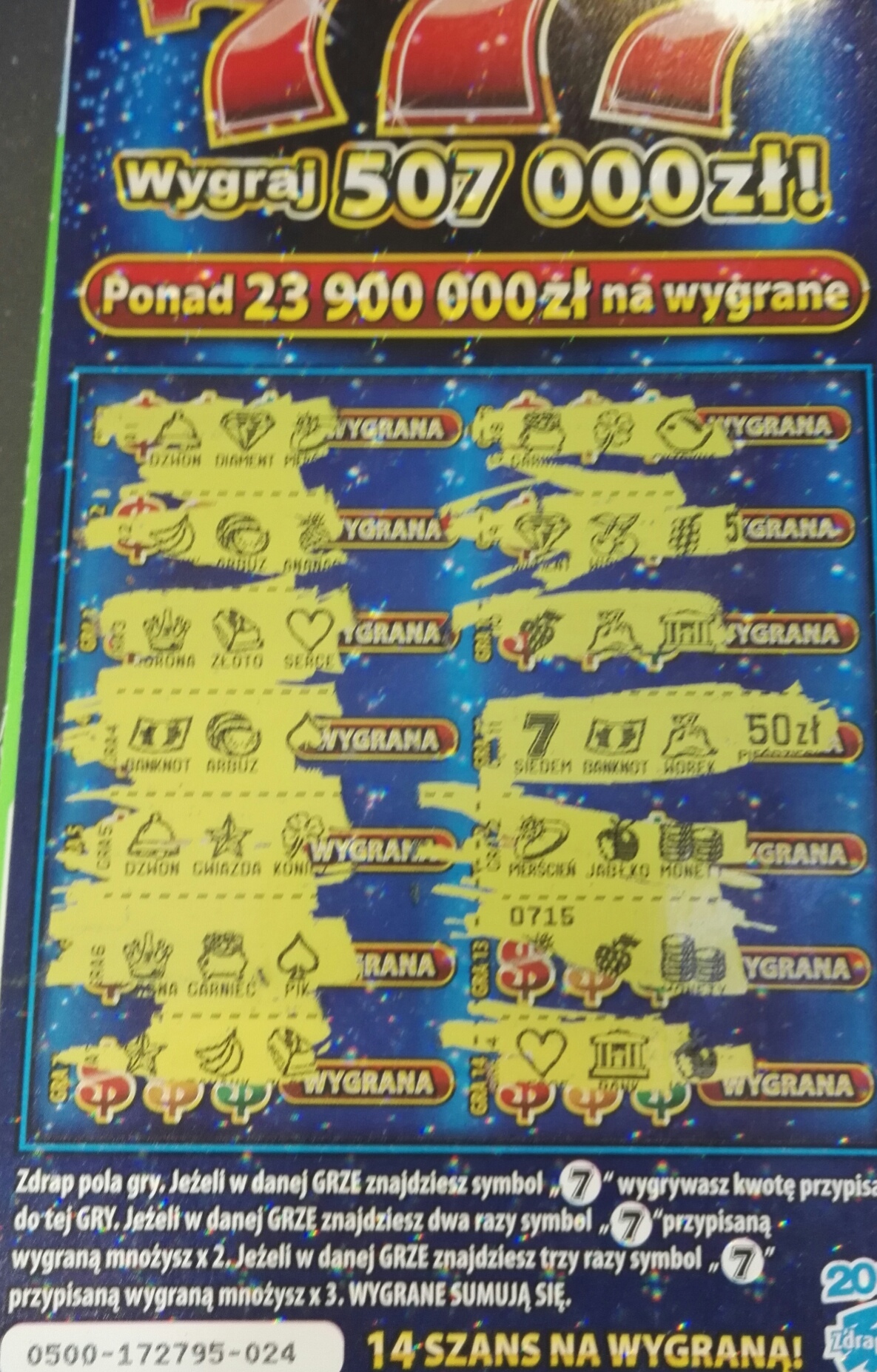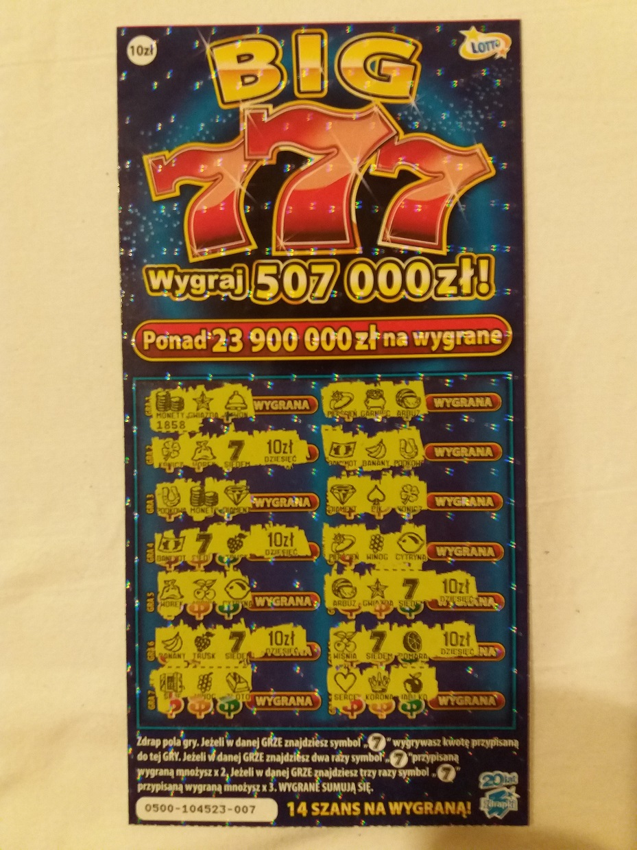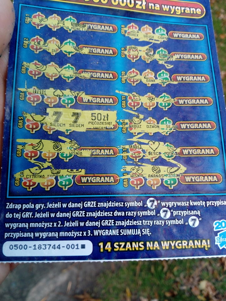 Do pełni szczęścia brakuje tylko, żeby w którejś zdrapce bylo 7 tys. zł![]()