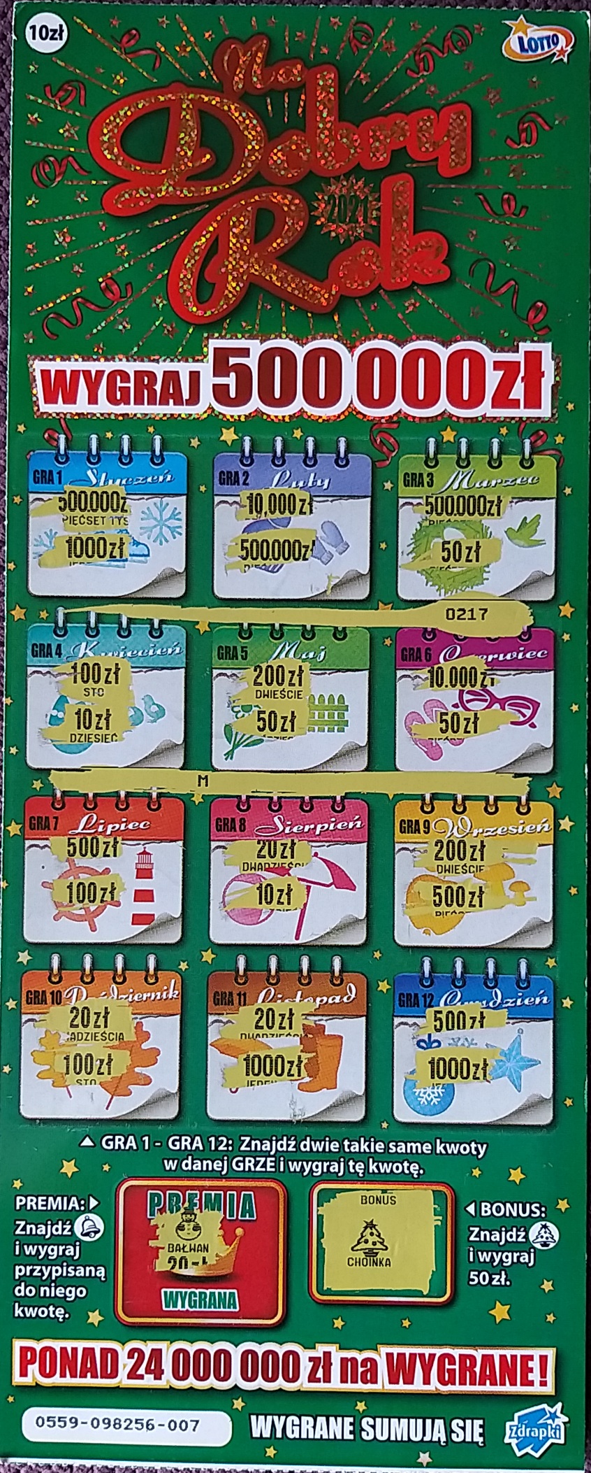 A ja dziś brałem Big777, w której był zwrot no i zauważyłem trochę NDR na kupce w kolekturze więc poprosiłem o jedną sztukę (024). O dziwo wpadła choinka za 50 zł