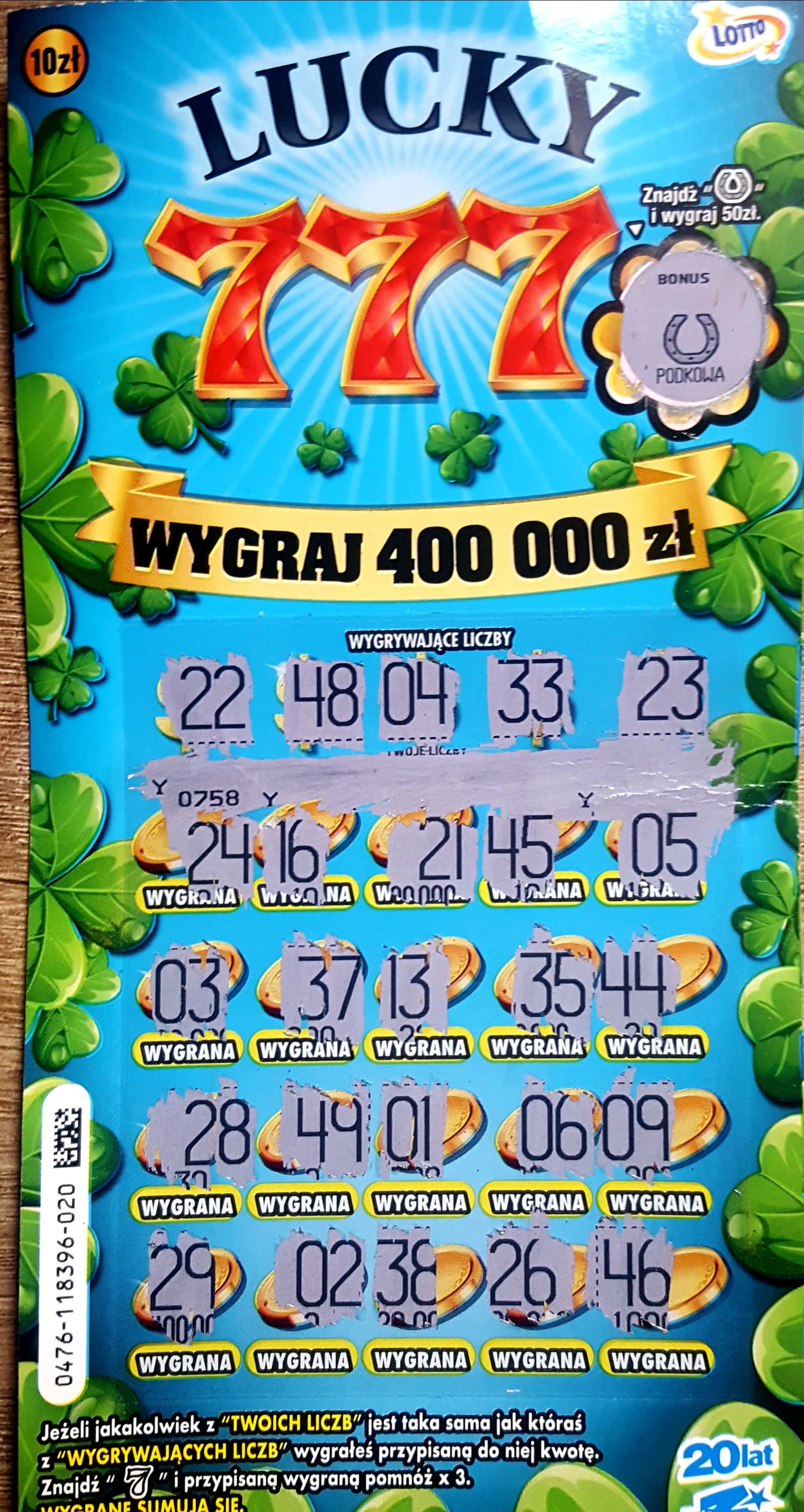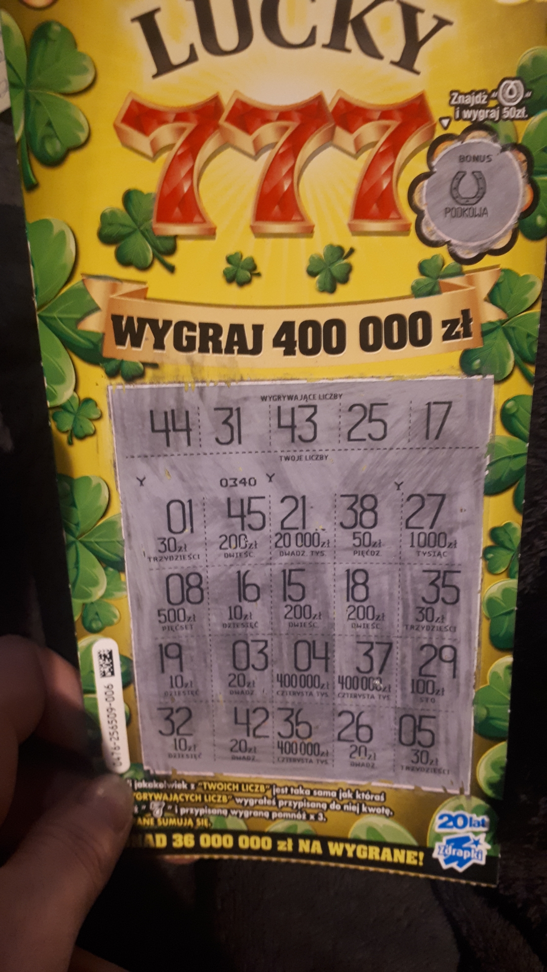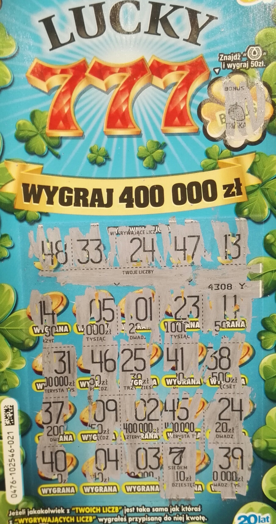 Trafione 50 zlotych z liczbą 7. Siodemka rozbudziła nadzieje na lepszy wynik....