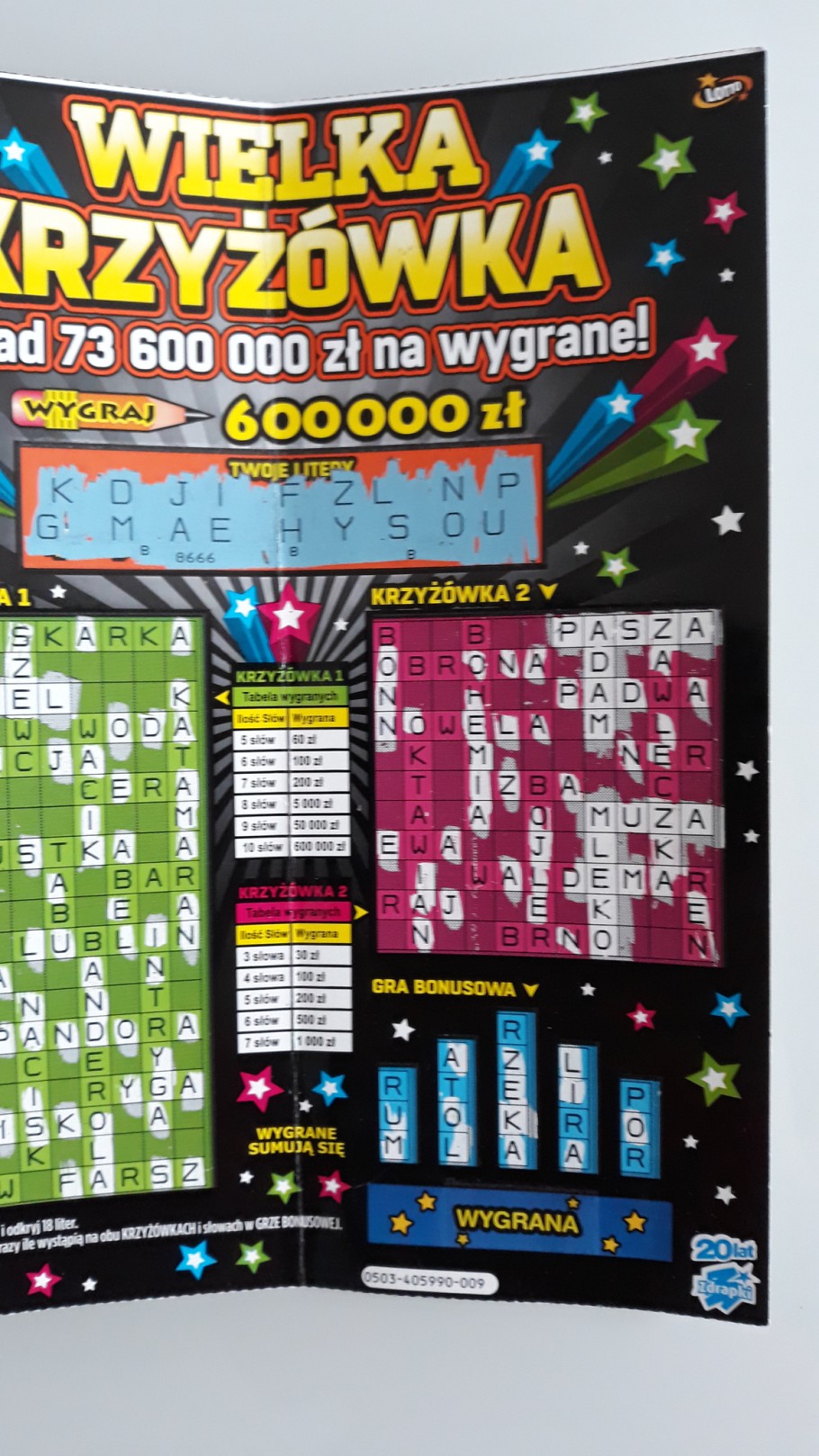 Też chciałbym taką nudę w zdrapkachChaberek pisze: ↑17 kwie 2021, 22:33Nudne to się robi. Byłam dziś w Poznaniu. Miałam kilkanaście minut do odjazdu pociągu więc weszłam do kiosku i kupiłam Wielką Krzyżówkę. Pani mi podała numer 10 i.... I did it again. Znów 200 zł